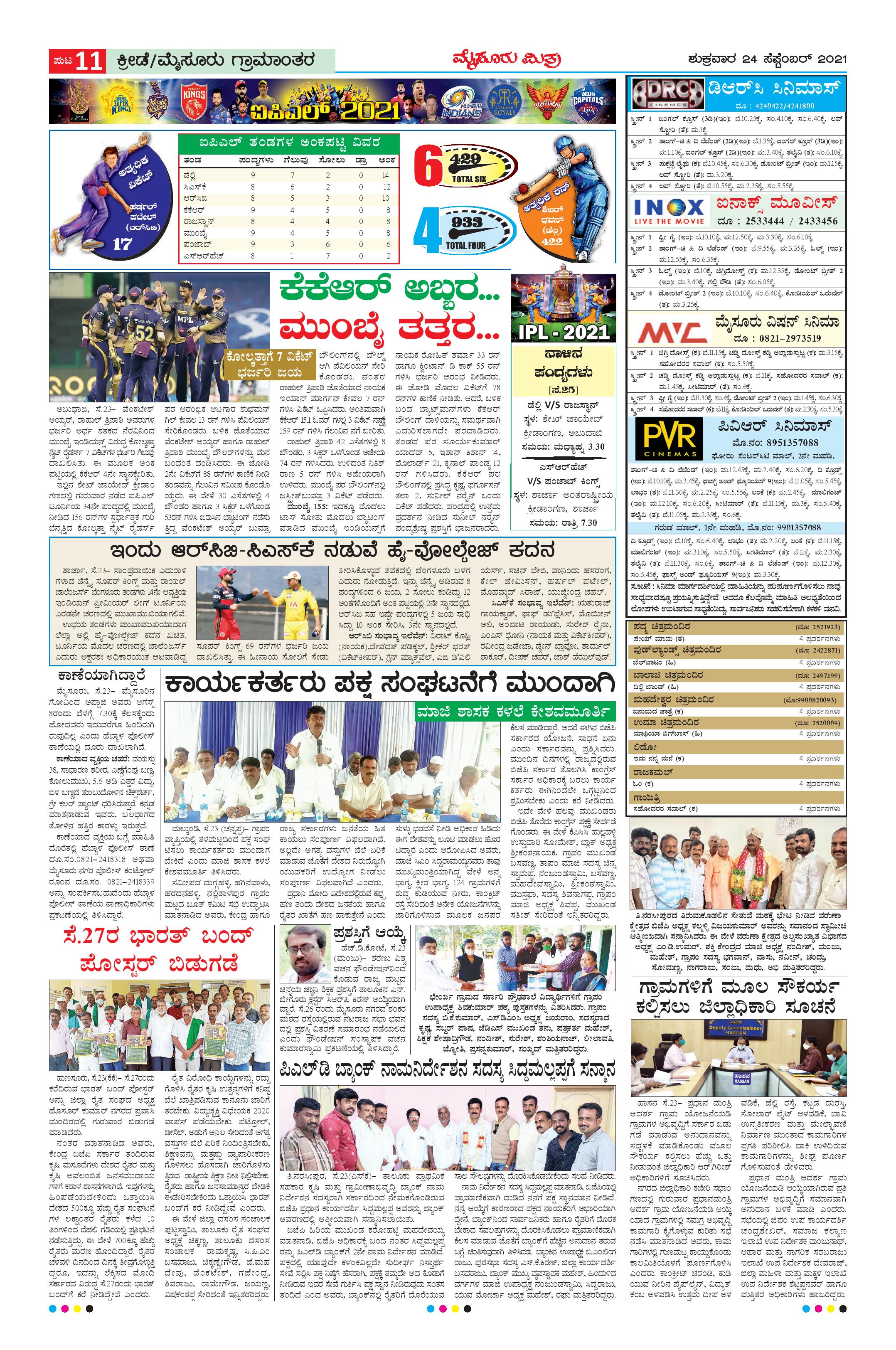 Mysuru Mithra Page: 11 September 24, 2021 << First << 11 >> Last >> Page 1Page 2Page 3Page 4Page 5Page 6Page 7Page 8Page 9Page 10Page 11Page 12 × Mysuru Mithra << First << 11 >> Last >> Page-1Page-2Page-3Page-4Page-5Page-6Page-7Page-8Page-9Page-10Page-11Page-12