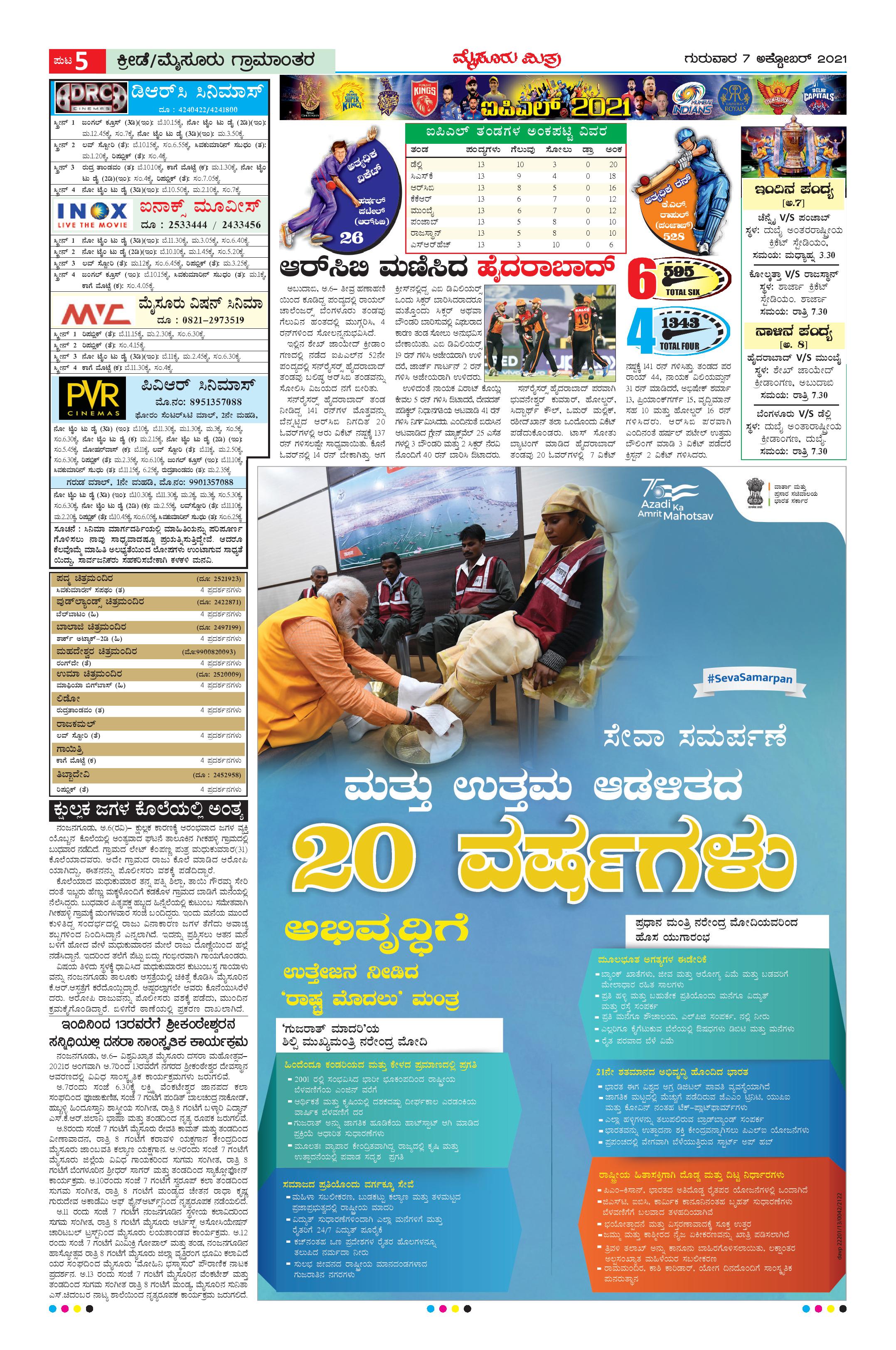 Mysuru Mithra Page: 5 October 07, 2021 << First << 5 >> Last >> Page 1Page 2Page 3Page 4Page 5Page 6Page 7Page 8Page 9Page 10Page 11Page 12 × Mysuru Mithra << First << 5 >> Last >> Page-1Page-2Page-3Page-4Page-5Page-6Page-7Page-8Page-9Page-10Page-11Page-12