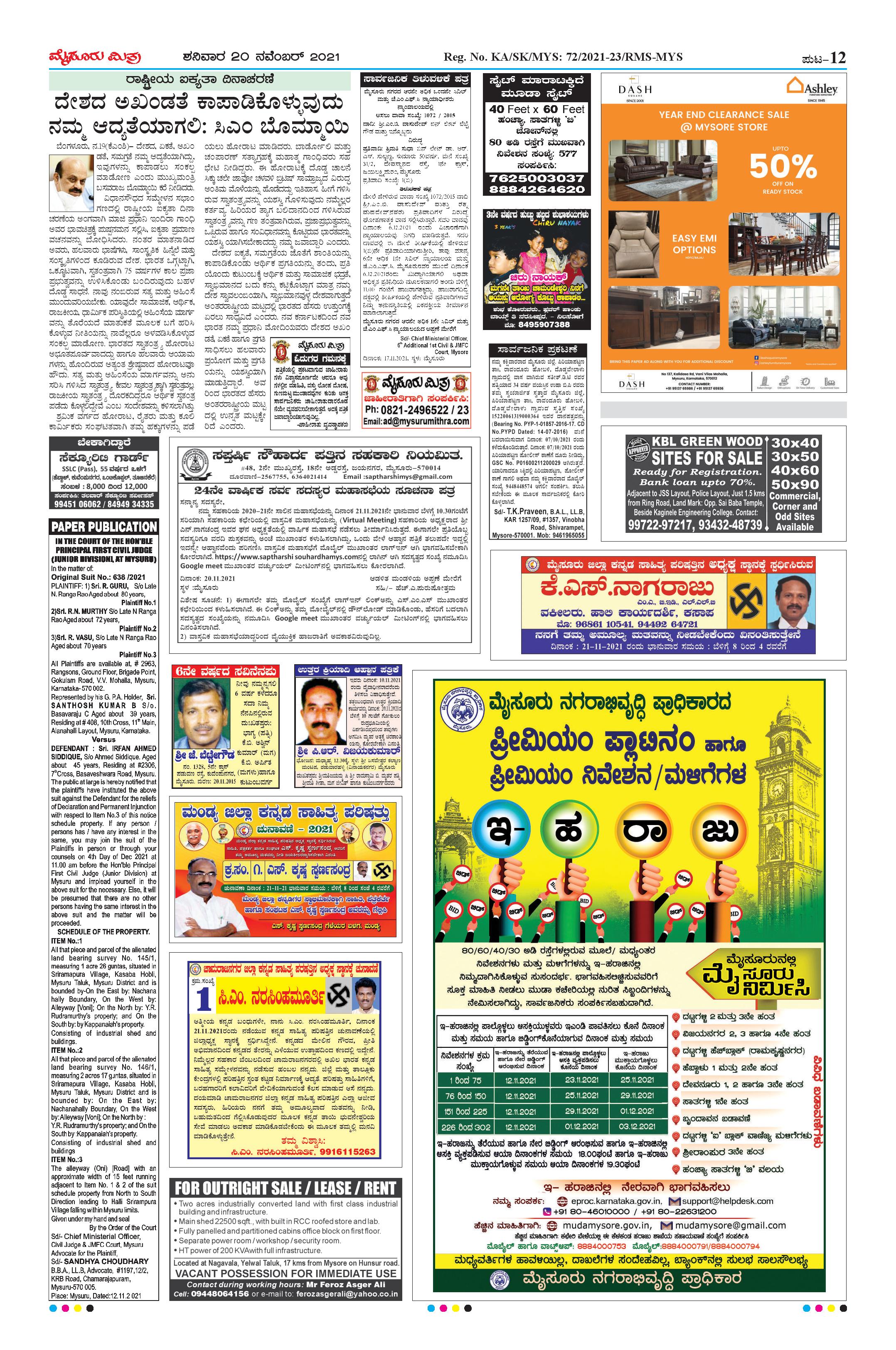 Mysuru Mithra Page: 12 November 20, 2021 << First << 12 >> Last >> Page 1Page 2Page 3Page 4Page 5Page 6Page 7Page 8Page 9Page 10Page 11Page 12 × Mysuru Mithra << First << 12 >> Last >> Page-1Page-2Page-3Page-4Page-5Page-6Page-7Page-8Page-9Page-10Page-11Page-12