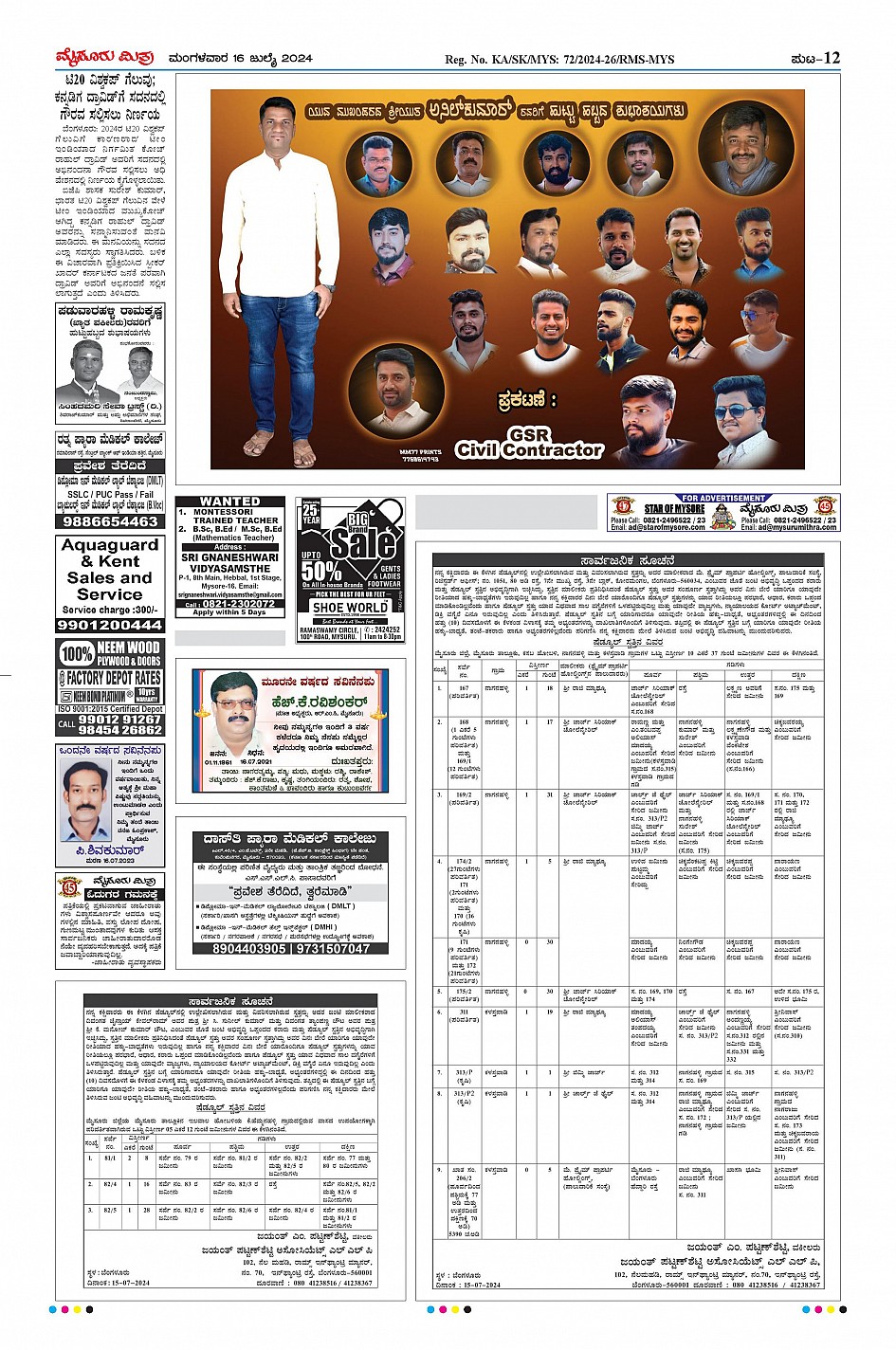 Mysuru Mithra Page: 12 July 16, 2024 << First << 12 >> Last >> Page 1Page 2Page 3Page 4Page 5Page 6Page 7Page 8Page 9Page 10Page 11Page 12 × Mysuru Mithra << First << 12 >> Last >> Page-1Page-2Page-3Page-4Page-5Page-6Page-7Page-8Page-9Page-10Page-11Page-12