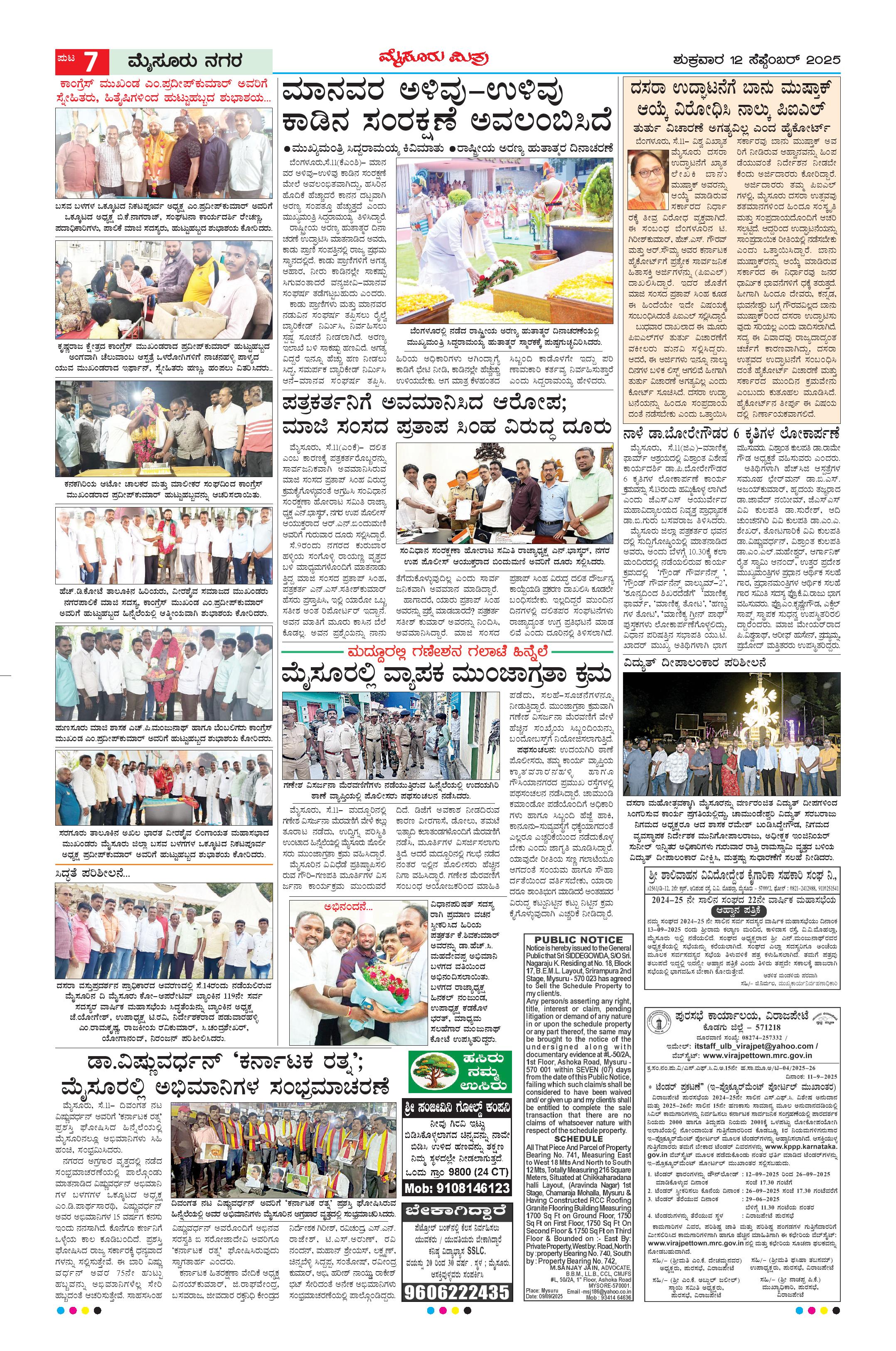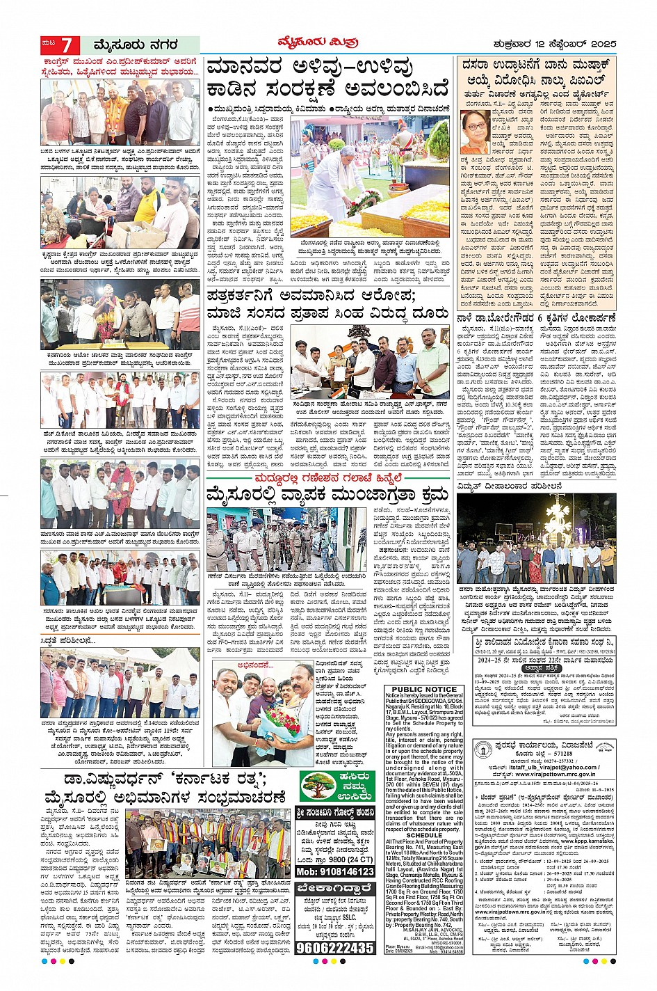 Mysuru Mithra Page: 7 September 12, 2025 << First << 7 >> Last >> Page 1Page 2Page 3Page 4Page 5Page 6Page 7Page 8Page 9Page 10Page 11Page 12 × Mysuru Mithra << First << 7 >> Last >> Page-1Page-2Page-3Page-4Page-5Page-6Page-7Page-8Page-9Page-10Page-11Page-12