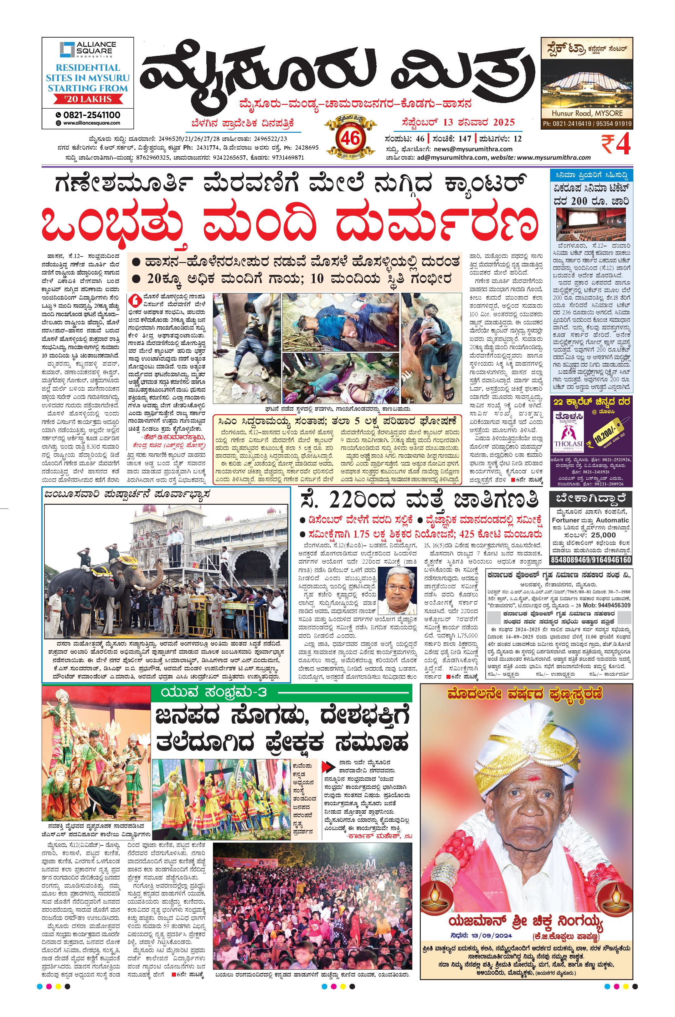 Mysuru Mithra September 13, 2025 << First << 1 >> Last >> Page 1Page 2Page 3Page 4Page 5Page 6Page 7Page 8Page 9Page 10Page 11Page 12 × Mysuru Mithra << First << 1 >> Last >> Page-1Page-2Page-3Page-4Page-5Page-6Page-7Page-8Page-9Page-10Page-11Page-12