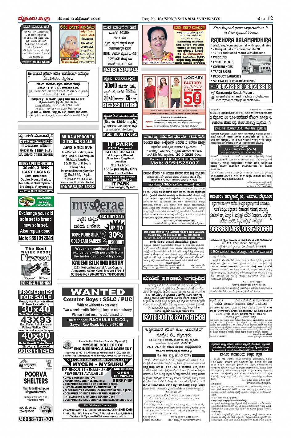 Mysuru Mithra Page: 12 September 13, 2025 << First << 12 >> Last >> Page 1Page 2Page 3Page 4Page 5Page 6Page 7Page 8Page 9Page 10Page 11Page 12 × Mysuru Mithra << First << 12 >> Last >> Page-1Page-2Page-3Page-4Page-5Page-6Page-7Page-8Page-9Page-10Page-11Page-12