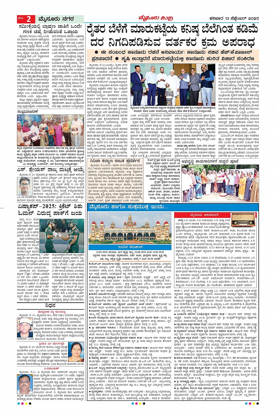 Mysuru Mithra Page: 2 September 13, 2025 << First << 2 >> Last >> Page 1Page 2Page 3Page 4Page 5Page 6Page 7Page 8Page 9Page 10Page 11Page 12 × Mysuru Mithra << First << 2 >> Last >> Page-1Page-2Page-3Page-4Page-5Page-6Page-7Page-8Page-9Page-10Page-11Page-12
