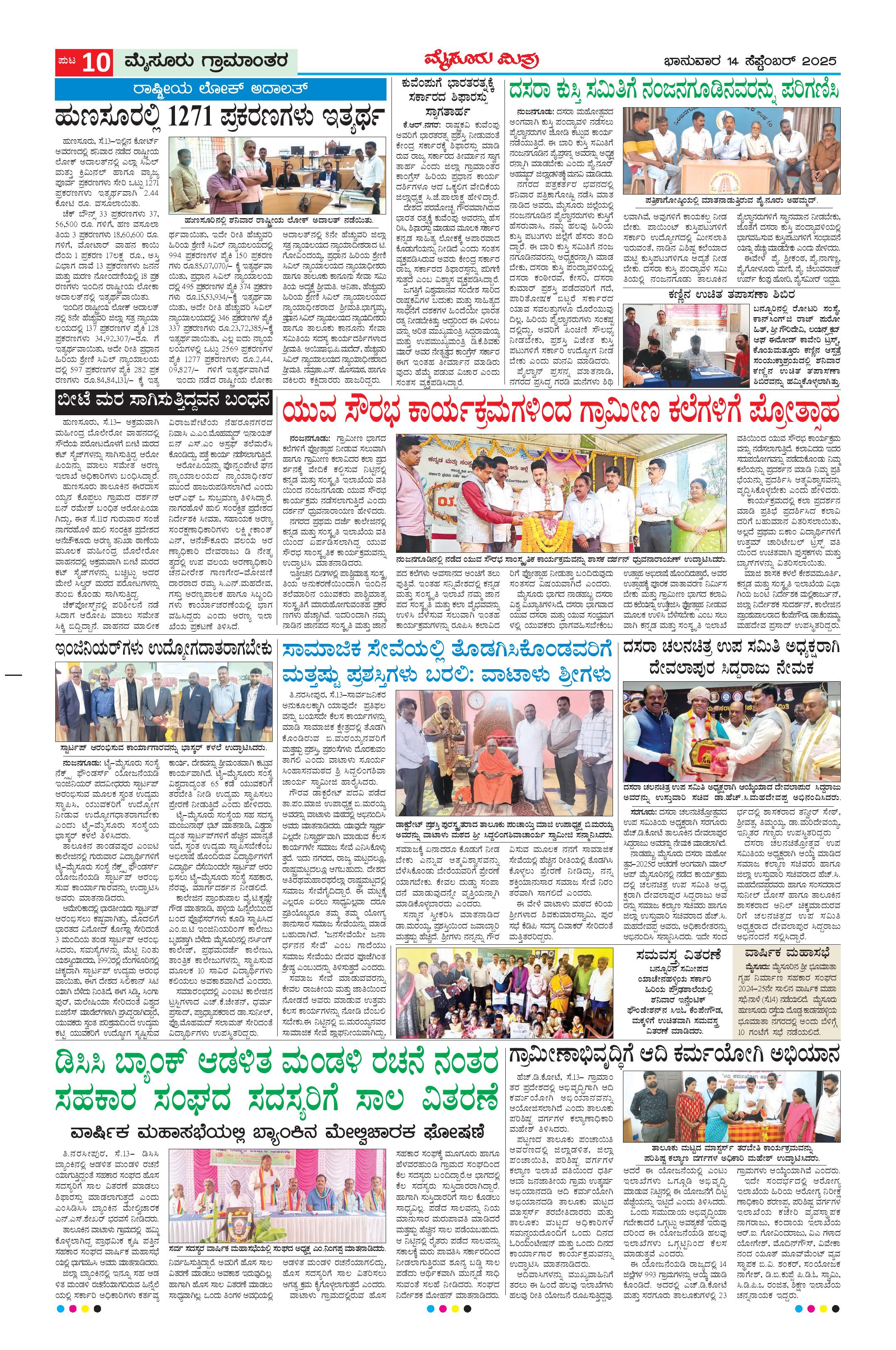 Mysuru Mithra Page: 10 September 14, 2025 << First << 10 >> Last >> Page 1Page 2Page 3Page 4Page 5Page 6Page 7Page 8Page 9Page 10Page 11Page 12 × Mysuru Mithra << First << 10 >> Last >> Page-1Page-2Page-3Page-4Page-5Page-6Page-7Page-8Page-9Page-10Page-11Page-12