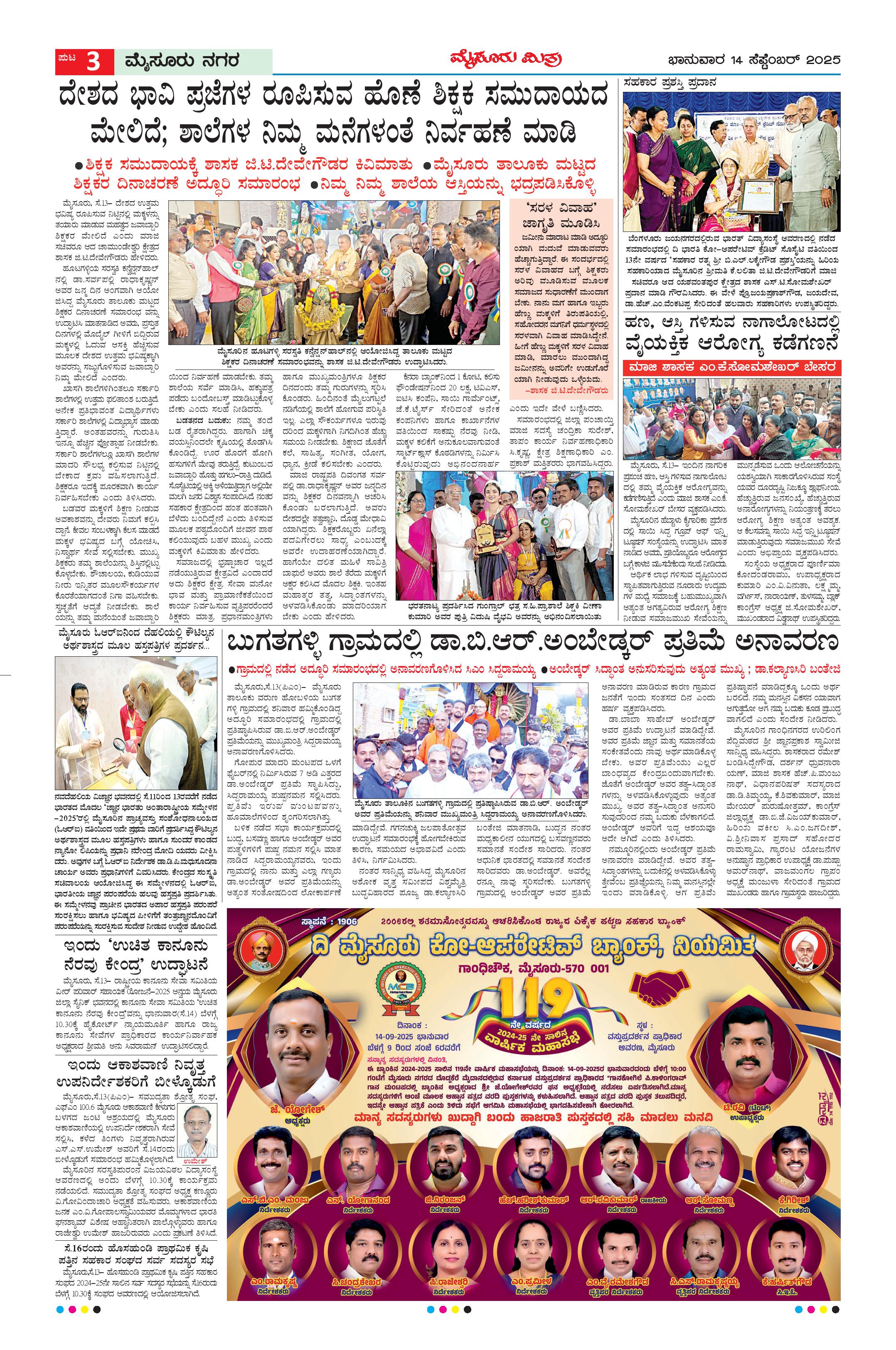 Mysuru Mithra Page: 3 September 14, 2025 << First << 3 >> Last >> Page 1Page 2Page 3Page 4Page 5Page 6Page 7Page 8Page 9Page 10Page 11Page 12 × Mysuru Mithra << First << 3 >> Last >> Page-1Page-2Page-3Page-4Page-5Page-6Page-7Page-8Page-9Page-10Page-11Page-12
