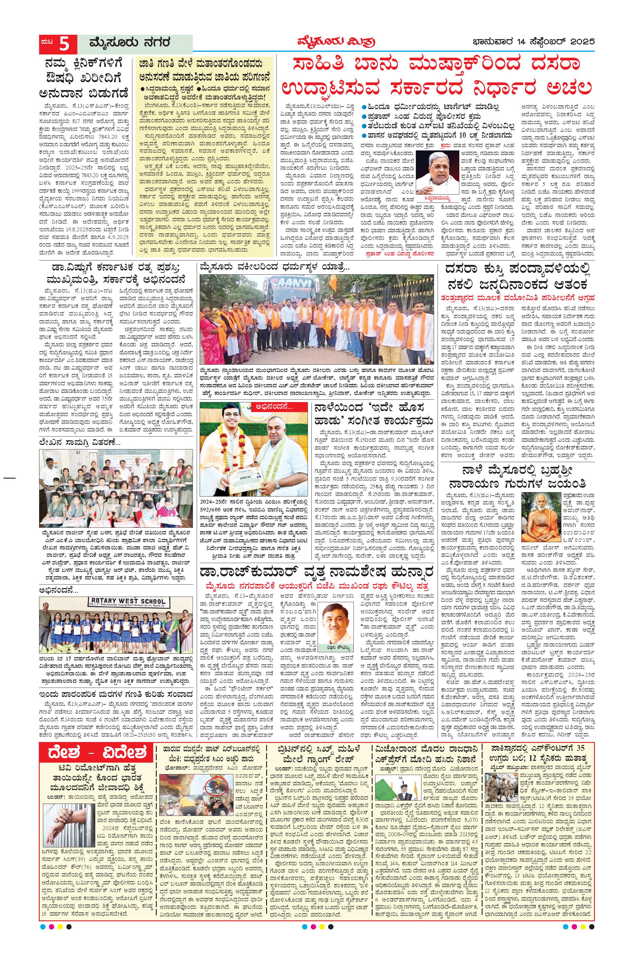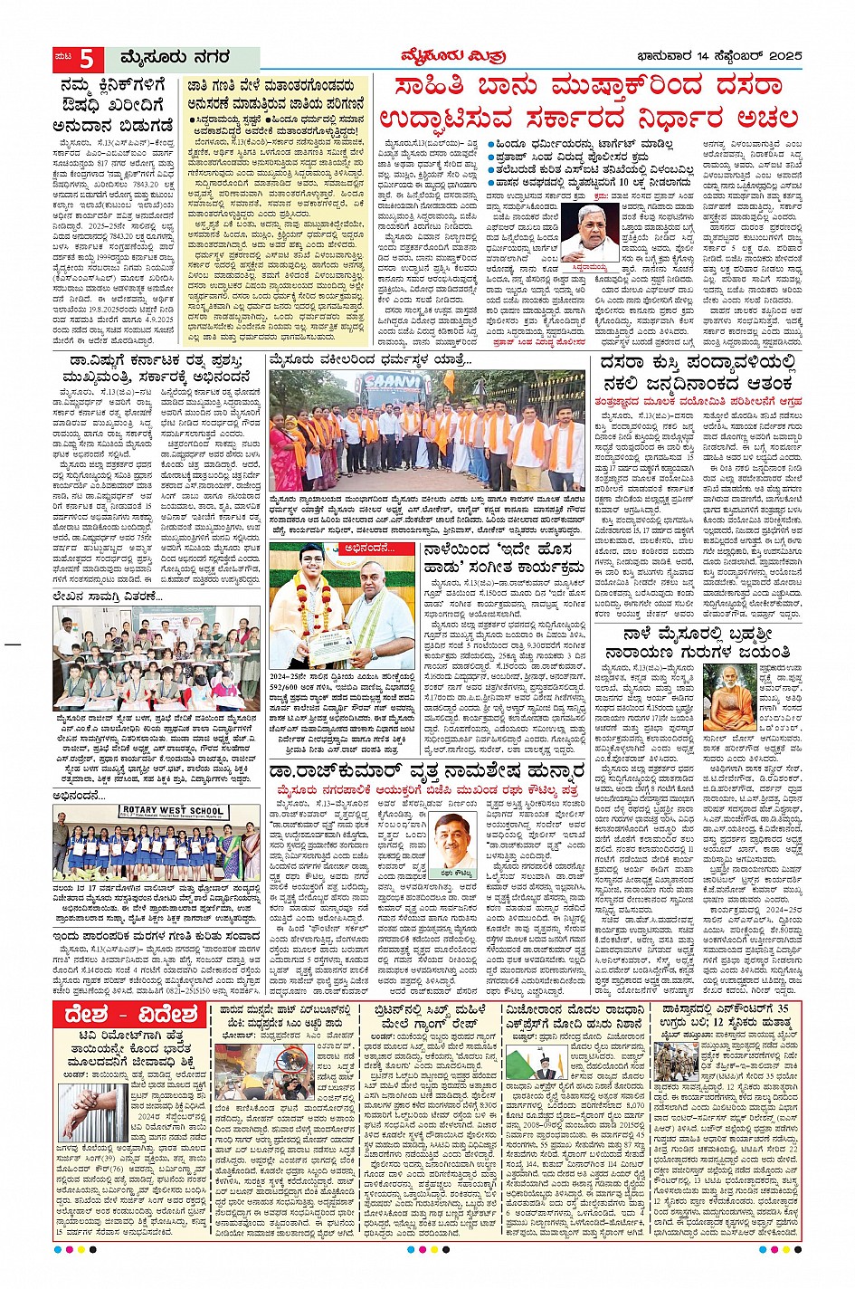 Mysuru Mithra Page: 5 September 14, 2025 << First << 5 >> Last >> Page 1Page 2Page 3Page 4Page 5Page 6Page 7Page 8Page 9Page 10Page 11Page 12 × Mysuru Mithra << First << 5 >> Last >> Page-1Page-2Page-3Page-4Page-5Page-6Page-7Page-8Page-9Page-10Page-11Page-12
