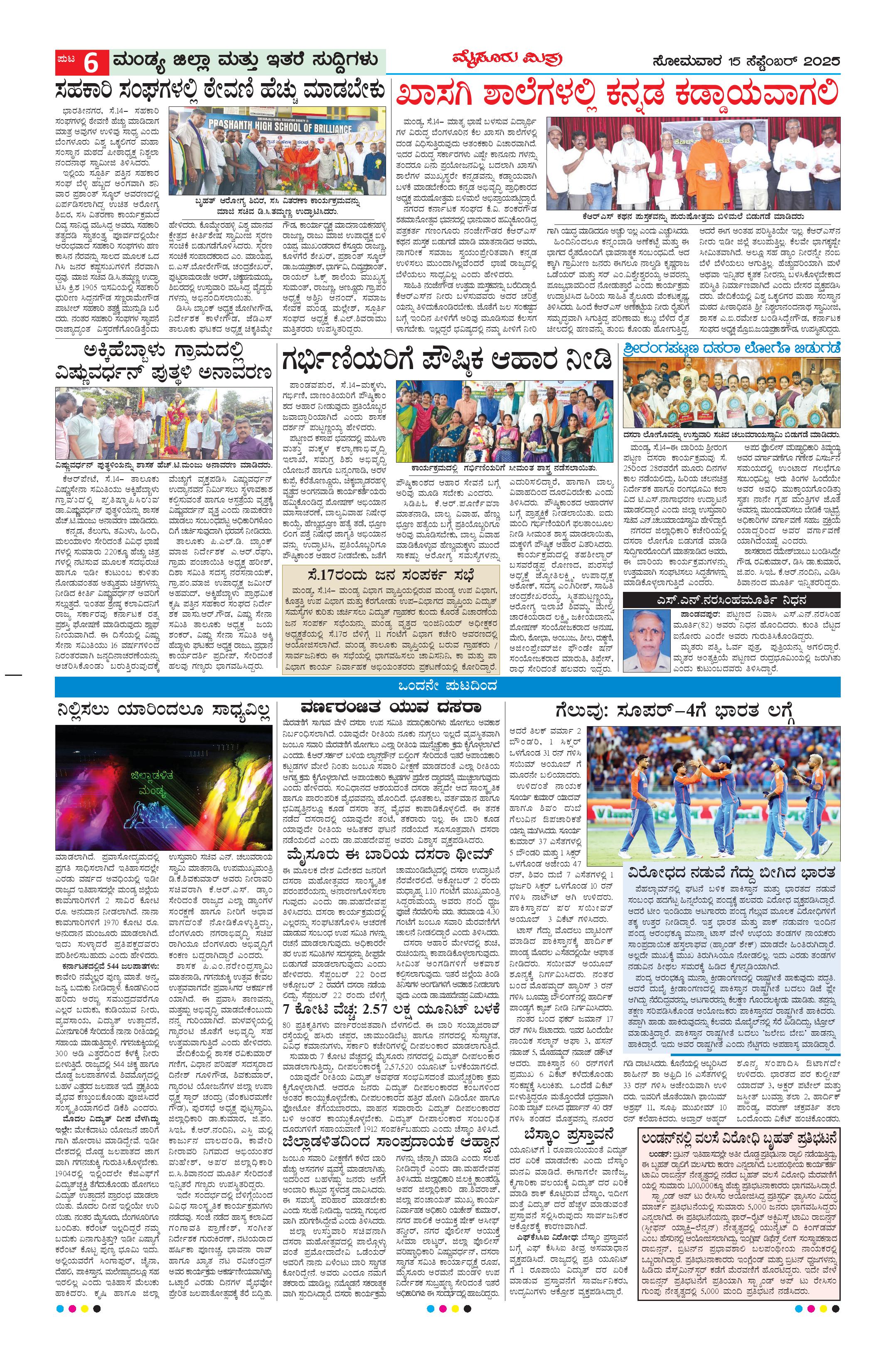 Mysuru Mithra Page: 6 September 15, 2025 << First << 6 >> Last >> Page 1Page 2Page 3Page 4Page 5Page 6Page 7Page 8Page 9Page 10 × Mysuru Mithra << First << 6 >> Last >> Page-1Page-2Page-3Page-4Page-5Page-6Page-7Page-8Page-9Page-10