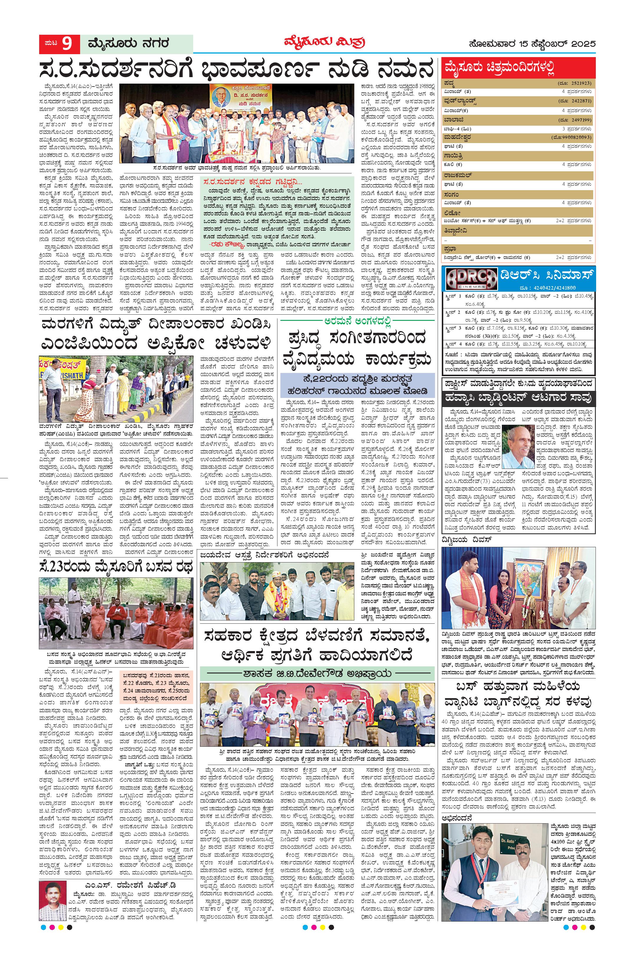 Mysuru Mithra Page: 9 September 15, 2025 << First << 9 >> Last >> Page 1Page 2Page 3Page 4Page 5Page 6Page 7Page 8Page 9Page 10 × Mysuru Mithra << First << 9 >> Last >> Page-1Page-2Page-3Page-4Page-5Page-6Page-7Page-8Page-9Page-10