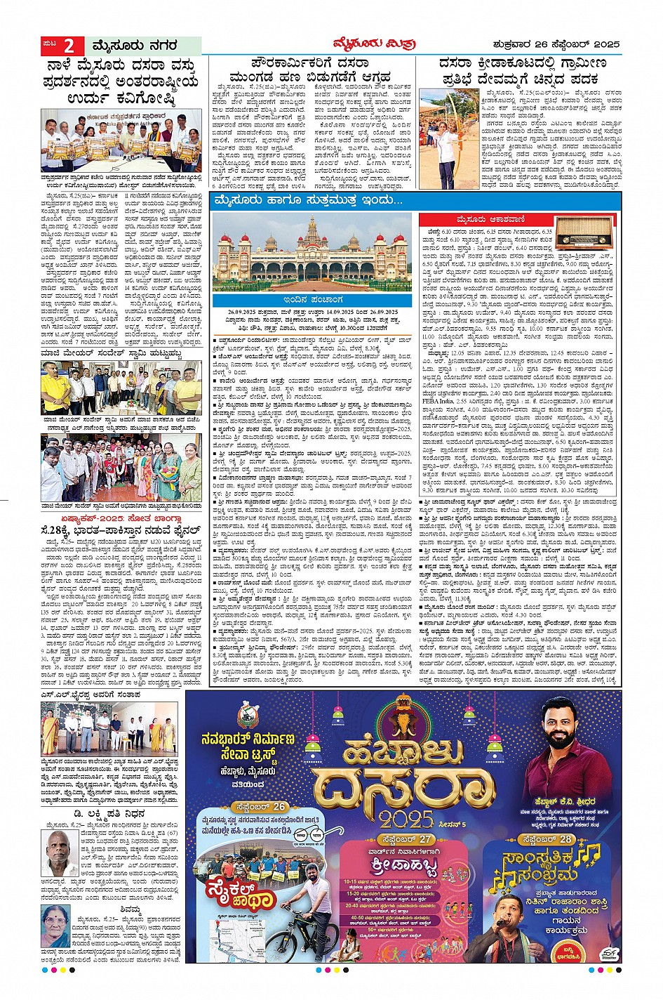 Mysuru Mithra Page: 2 September 26, 2025 << First << 2 >> Last >> Page 1Page 2Page 3Page 4Page 5Page 6Page 7Page 8Page 9Page 10Page 11Page 12 × Mysuru Mithra << First << 2 >> Last >> Page-1Page-2Page-3Page-4Page-5Page-6Page-7Page-8Page-9Page-10Page-11Page-12