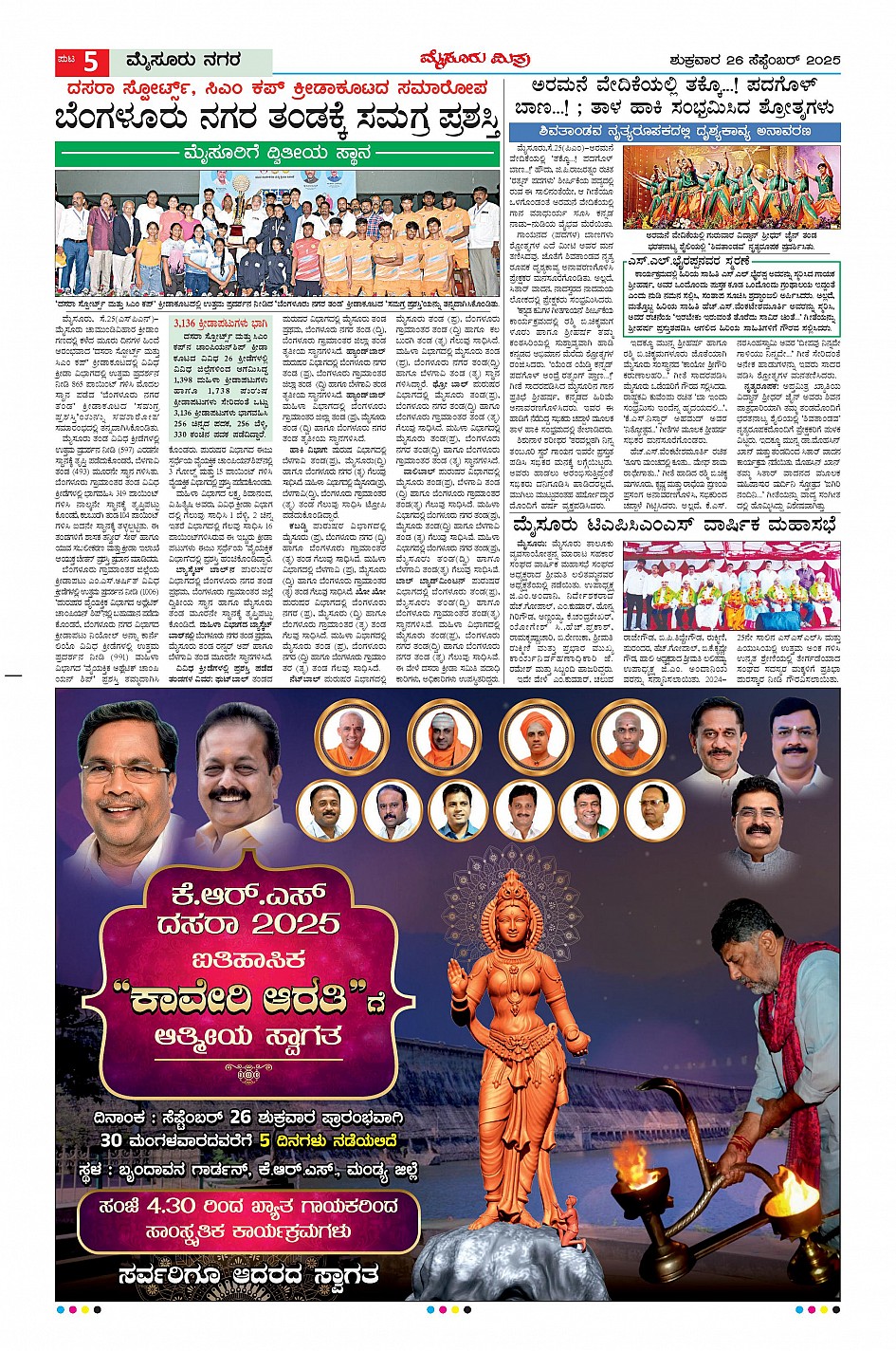 Mysuru Mithra Page: 5 September 26, 2025 << First << 5 >> Last >> Page 1Page 2Page 3Page 4Page 5Page 6Page 7Page 8Page 9Page 10Page 11Page 12 × Mysuru Mithra << First << 5 >> Last >> Page-1Page-2Page-3Page-4Page-5Page-6Page-7Page-8Page-9Page-10Page-11Page-12