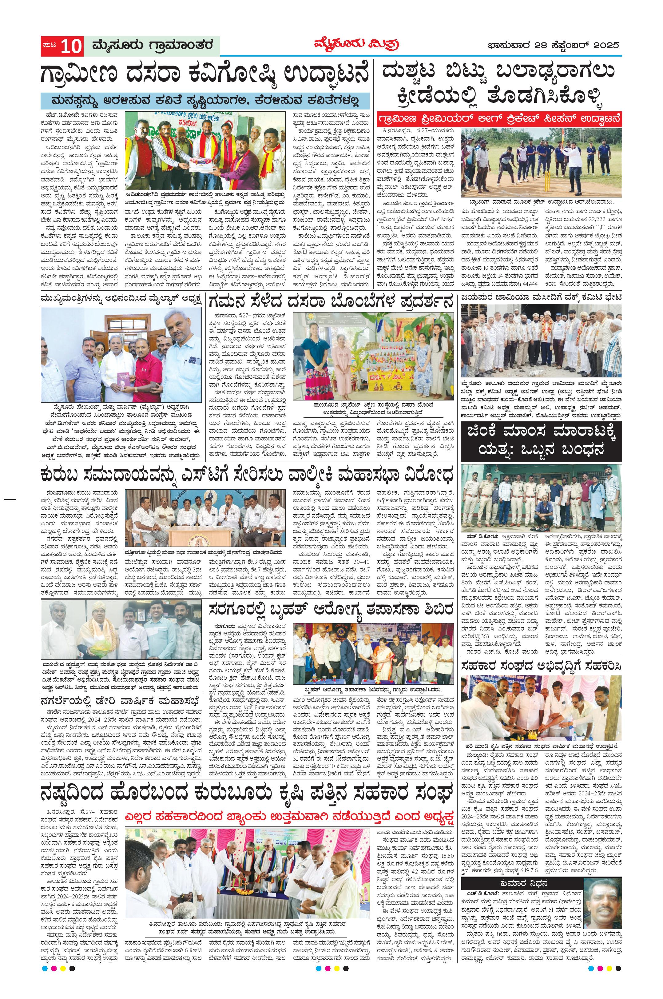 Mysuru Mithra Page: 10 September 28, 2025 << First << 10 >> Last >> Page 1Page 2Page 3Page 4Page 5Page 6Page 7Page 8Page 9Page 10Page 11Page 12 × Mysuru Mithra << First << 10 >> Last >> Page-1Page-2Page-3Page-4Page-5Page-6Page-7Page-8Page-9Page-10Page-11Page-12