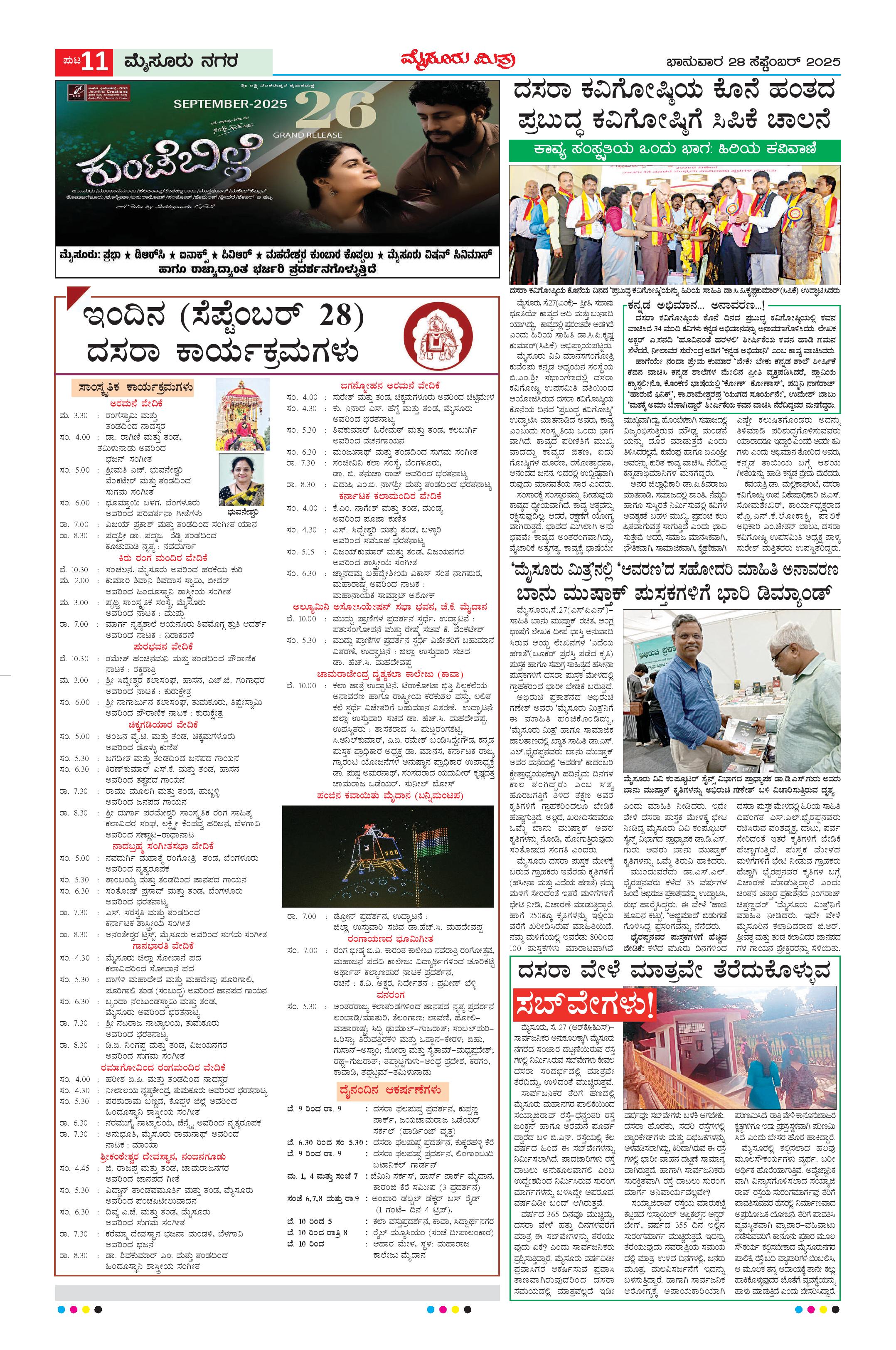 Mysuru Mithra Page: 11 September 28, 2025 << First << 11 >> Last >> Page 1Page 2Page 3Page 4Page 5Page 6Page 7Page 8Page 9Page 10Page 11Page 12 × Mysuru Mithra << First << 11 >> Last >> Page-1Page-2Page-3Page-4Page-5Page-6Page-7Page-8Page-9Page-10Page-11Page-12