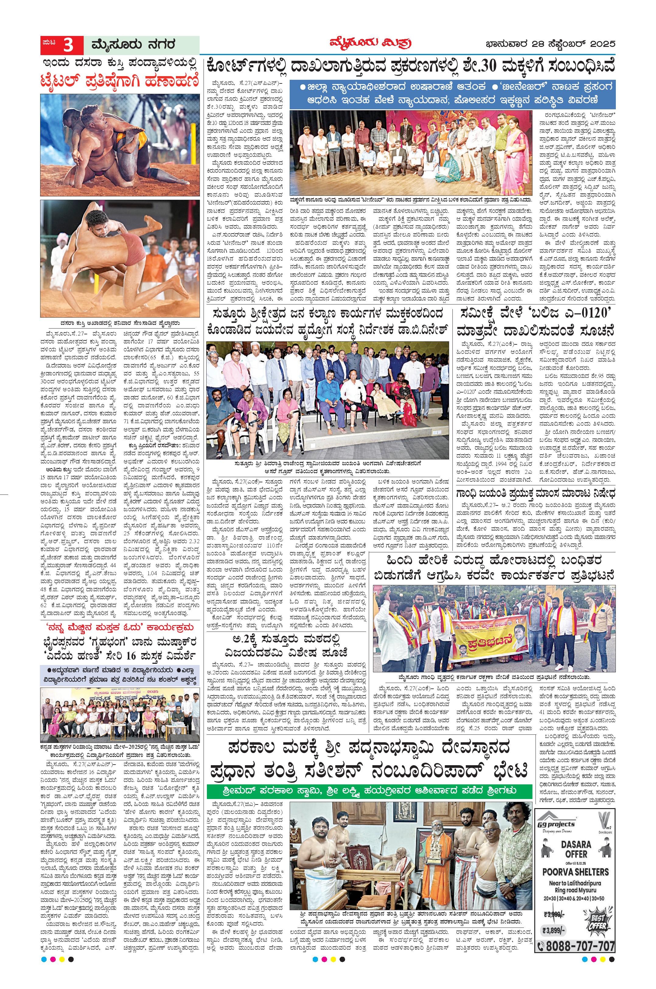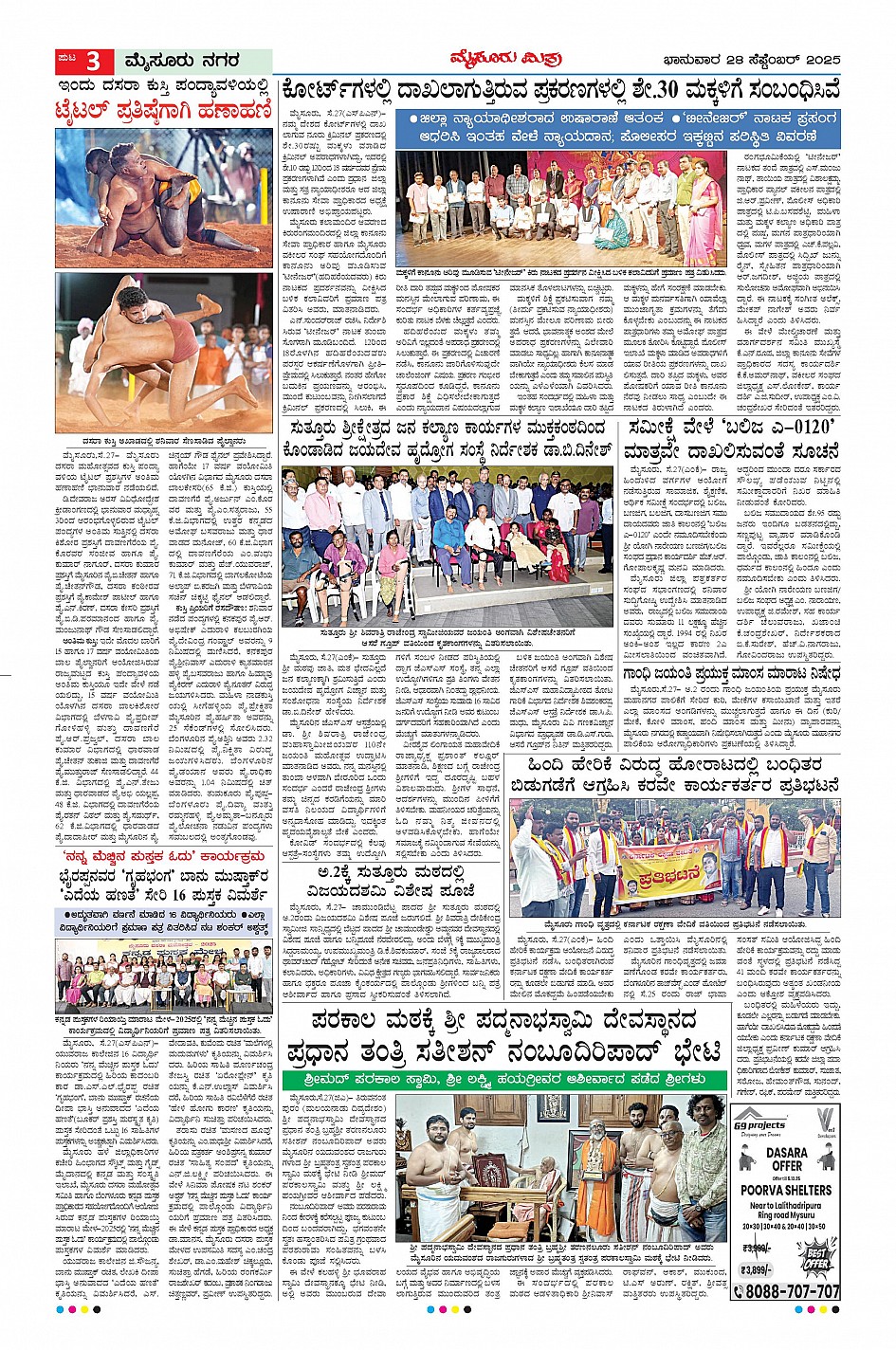 Mysuru Mithra Page: 3 September 28, 2025 << First << 3 >> Last >> Page 1Page 2Page 3Page 4Page 5Page 6Page 7Page 8Page 9Page 10Page 11Page 12 × Mysuru Mithra << First << 3 >> Last >> Page-1Page-2Page-3Page-4Page-5Page-6Page-7Page-8Page-9Page-10Page-11Page-12