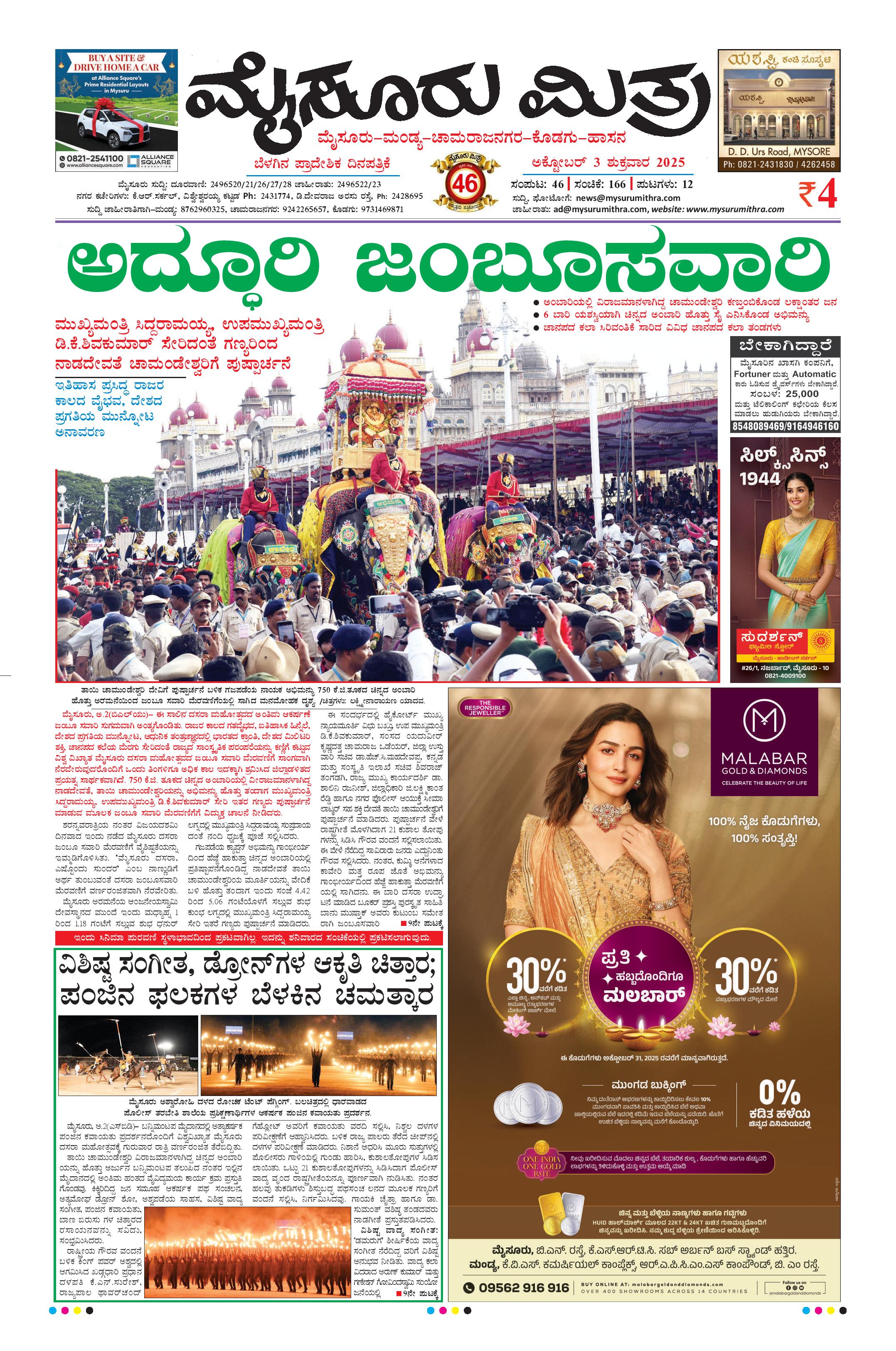 Mysuru Mithra Page: 3 October 03, 2025 << First << 3 >> Last >> Page 1Page 2Page 3Page 4Page 5Page 6Page 7Page 8Page 9Page 10Page 11Page 12 × Mysuru Mithra << First << 3 >> Last >> Page-1Page-2Page-3Page-4Page-5Page-6Page-7Page-8Page-9Page-10Page-11Page-12