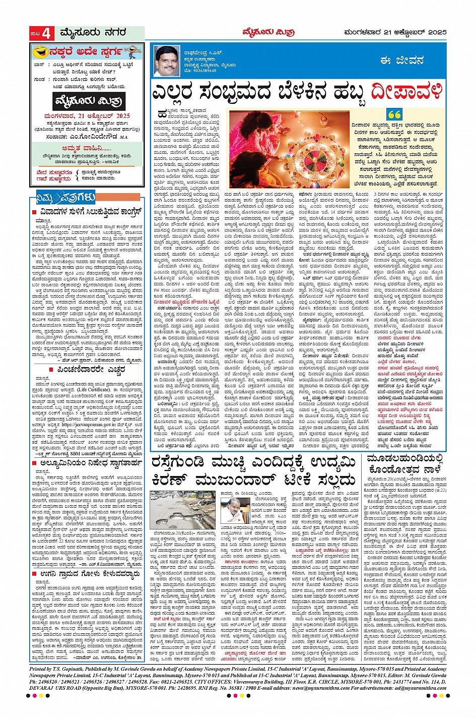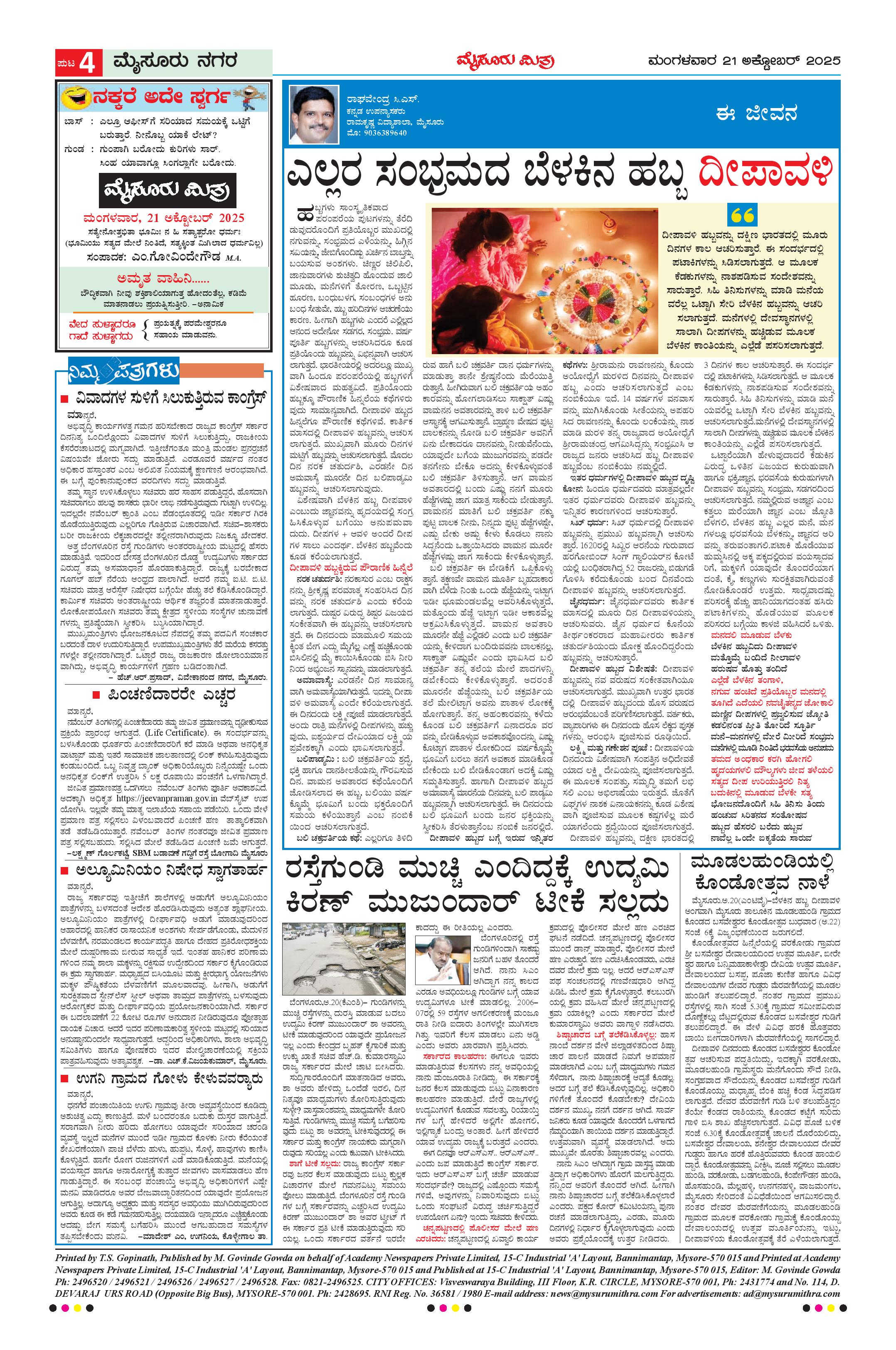 Mysuru Mithra Page: 4 October 21, 2025 << First << 4 >> Last >> Page 1Page 2Page 3Page 4Page 5Page 6Page 7Page 8Page 9Page 10Page 11Page 12 × Mysuru Mithra << First << 4 >> Last >> Page-1Page-2Page-3Page-4Page-5Page-6Page-7Page-8Page-9Page-10Page-11Page-12