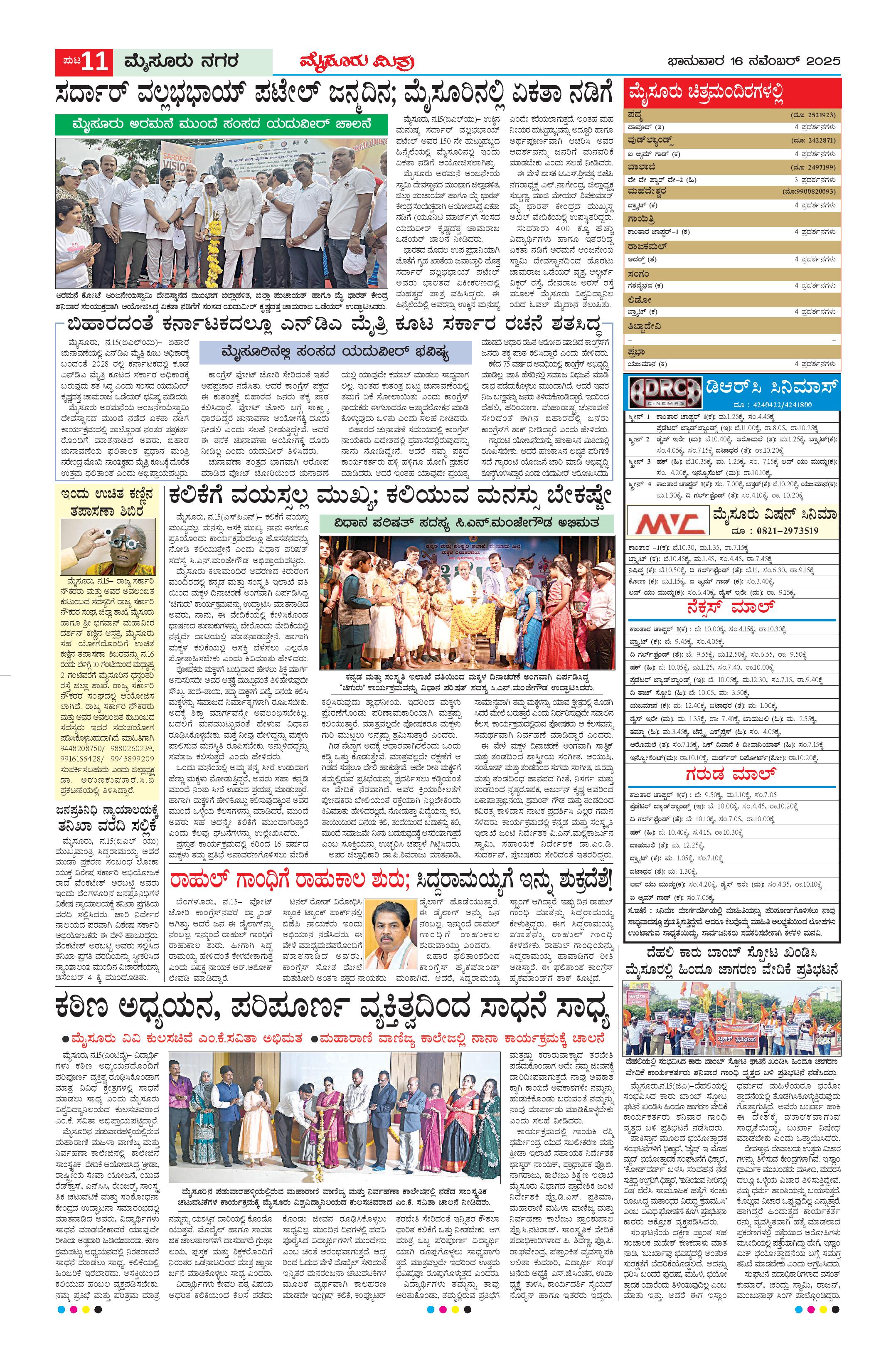Mysuru Mithra Page: 11 November 16, 2025 << First << 11 >> Last >> Page 1Page 2Page 3Page 4Page 5Page 6Page 7Page 8Page 9Page 10Page 11Page 12 × Mysuru Mithra << First << 11 >> Last >> Page-1Page-2Page-3Page-4Page-5Page-6Page-7Page-8Page-9Page-10Page-11Page-12