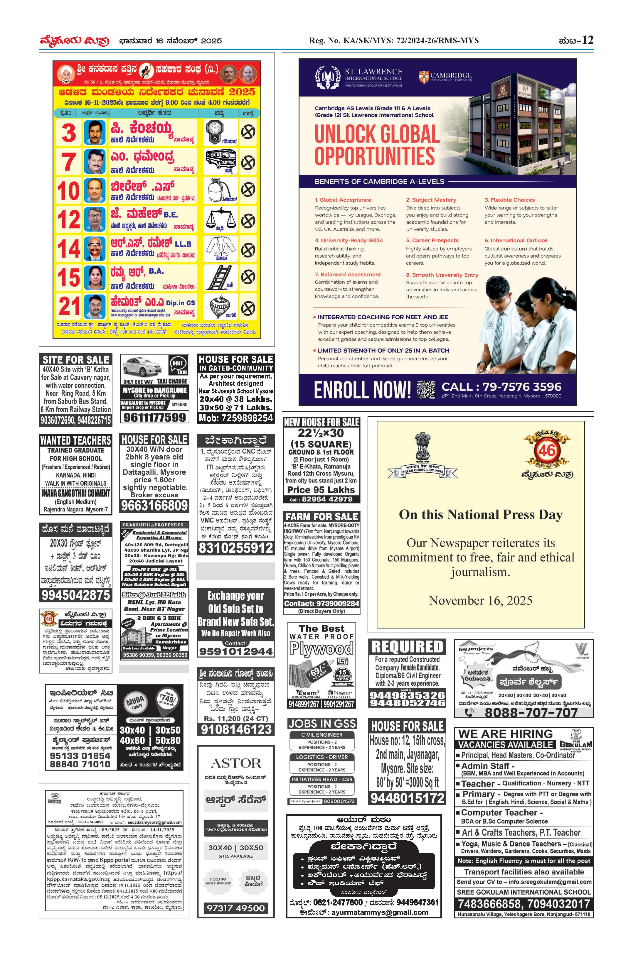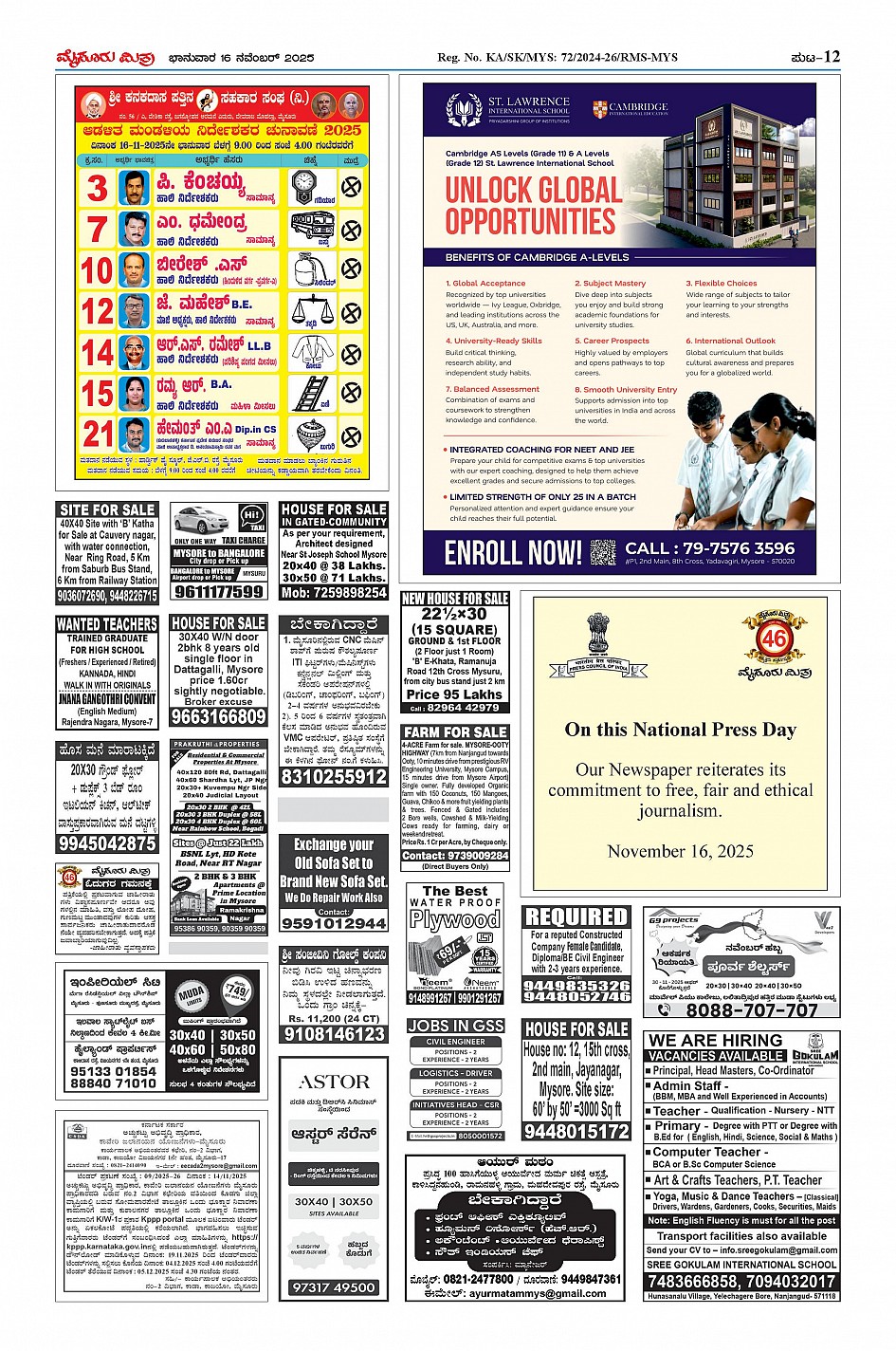 Mysuru Mithra Page: 12 November 16, 2025 << First << 12 >> Last >> Page 1Page 2Page 3Page 4Page 5Page 6Page 7Page 8Page 9Page 10Page 11Page 12 × Mysuru Mithra << First << 12 >> Last >> Page-1Page-2Page-3Page-4Page-5Page-6Page-7Page-8Page-9Page-10Page-11Page-12