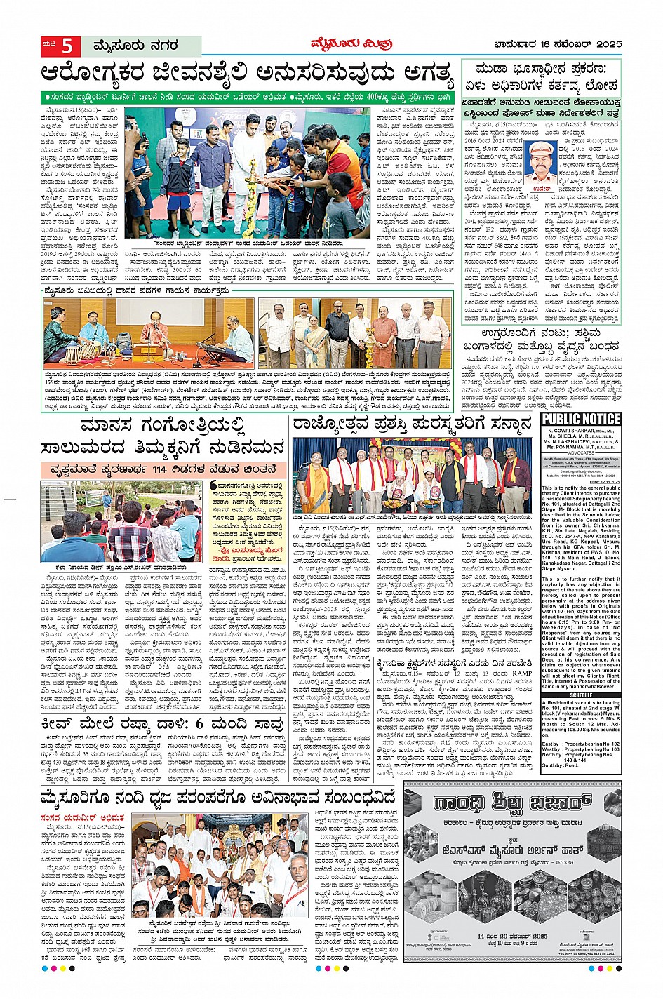 Mysuru Mithra Page: 5 November 16, 2025 << First << 5 >> Last >> Page 1Page 2Page 3Page 4Page 5Page 6Page 7Page 8Page 9Page 10Page 11Page 12 × Mysuru Mithra << First << 5 >> Last >> Page-1Page-2Page-3Page-4Page-5Page-6Page-7Page-8Page-9Page-10Page-11Page-12
