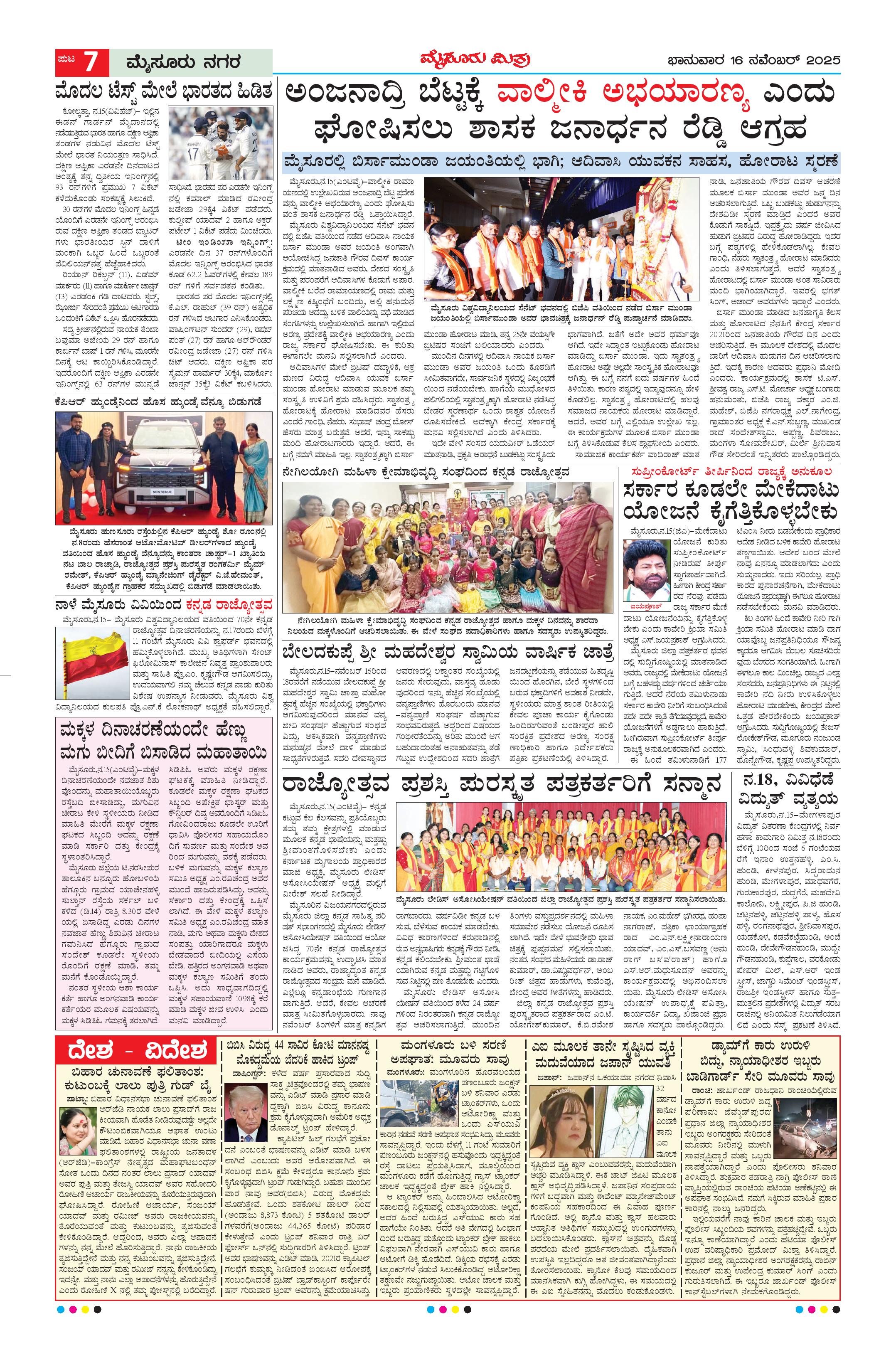 Mysuru Mithra Page: 7 November 16, 2025 << First << 7 >> Last >> Page 1Page 2Page 3Page 4Page 5Page 6Page 7Page 8Page 9Page 10Page 11Page 12 × Mysuru Mithra << First << 7 >> Last >> Page-1Page-2Page-3Page-4Page-5Page-6Page-7Page-8Page-9Page-10Page-11Page-12