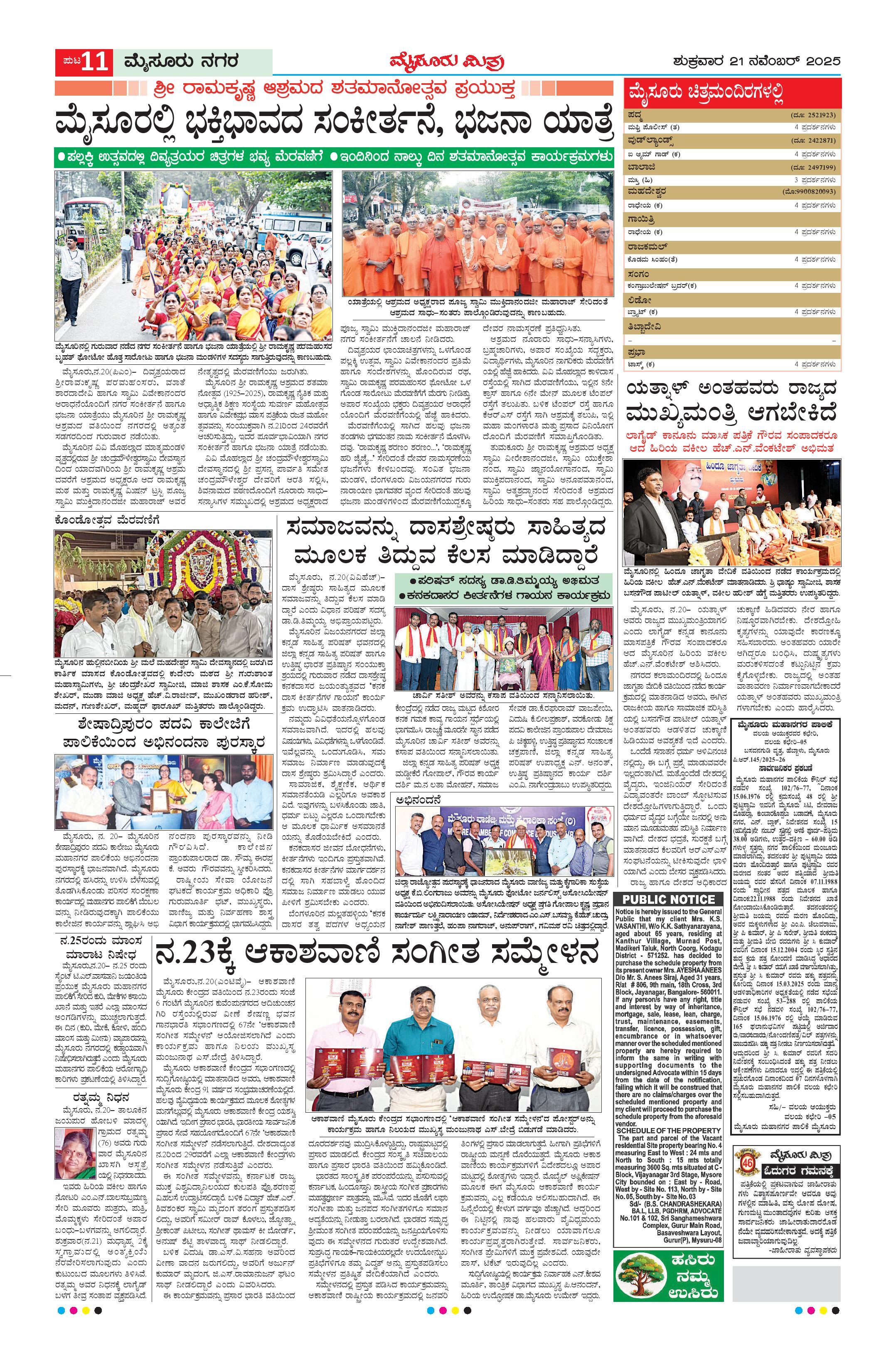 Mysuru Mithra Page: 11 November 21, 2025 << First << 11 >> Last >> Page 1Page 2Page 3Page 4Page 5Page 6Page 7Page 8Page 9Page 10Page 11Page 12Page 13Page 14Page 15Page 16 × Mysuru Mithra << First << 11 >> Last >> Page-1Page-2Page-3Page-4Page-5Page-6Page-7Page-8Page-9Page-10Page-11Page-12Page-13Page-14Page-15Page-16