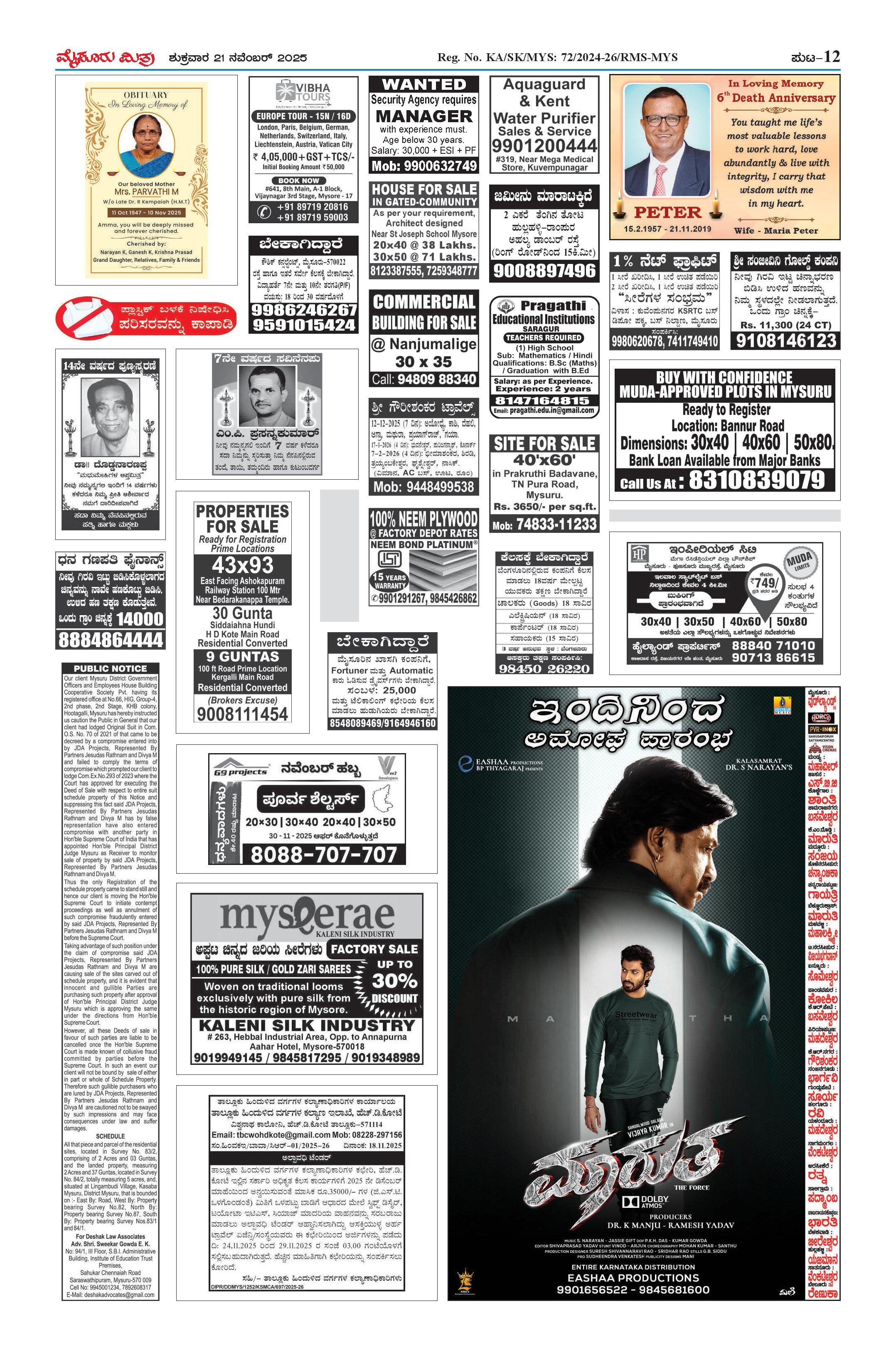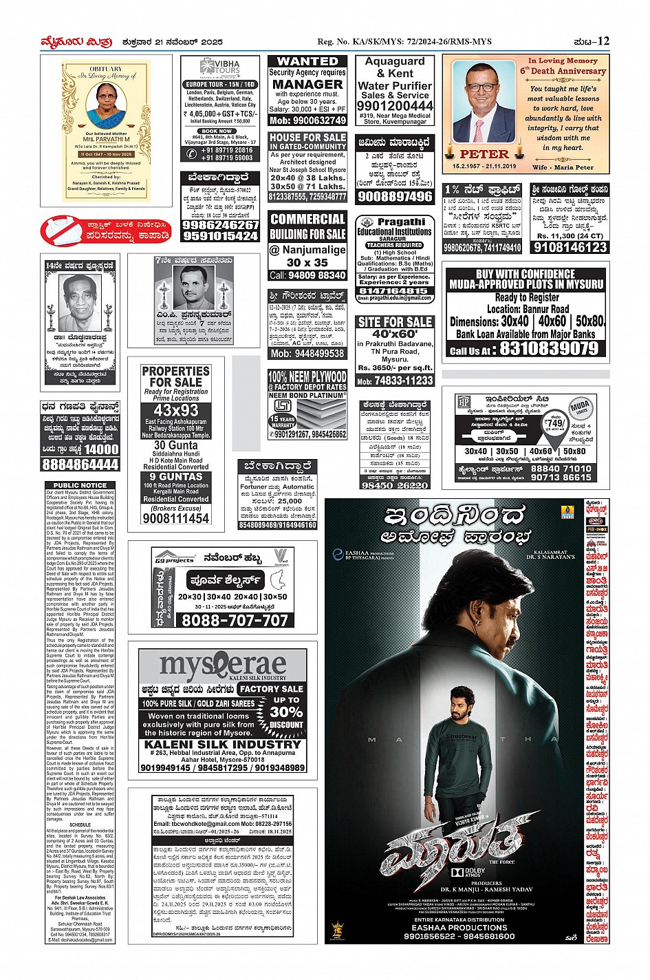 Mysuru Mithra Page: 12 November 21, 2025 << First << 12 >> Last >> Page 1Page 2Page 3Page 4Page 5Page 6Page 7Page 8Page 9Page 10Page 11Page 12Page 13Page 14Page 15Page 16 × Mysuru Mithra << First << 12 >> Last >> Page-1Page-2Page-3Page-4Page-5Page-6Page-7Page-8Page-9Page-10Page-11Page-12Page-13Page-14Page-15Page-16