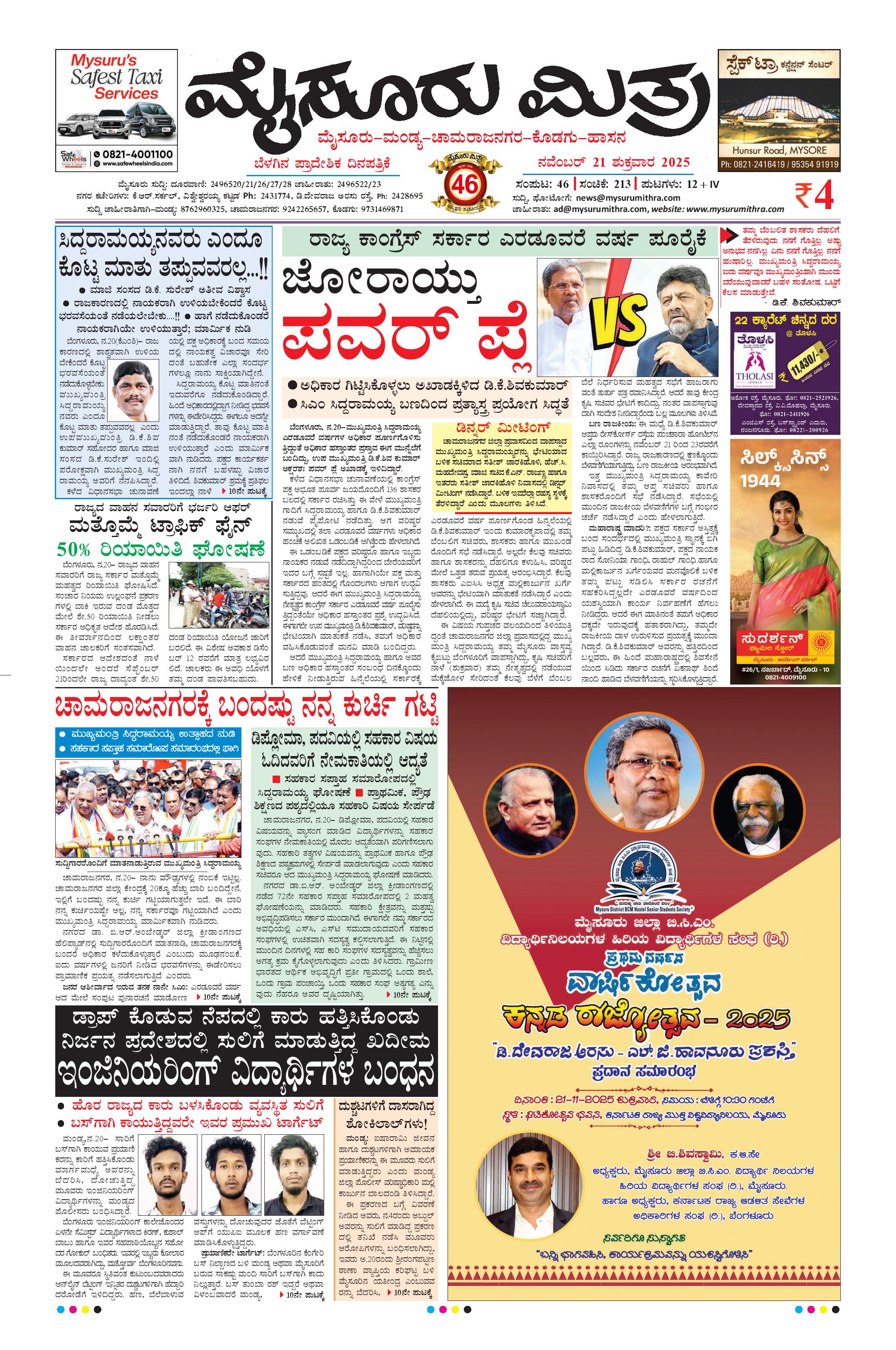 Mysuru Mithra Page: 5 November 21, 2025 << First << 5 >> Last >> Page 1Page 2Page 3Page 4Page 5Page 6Page 7Page 8Page 9Page 10Page 11Page 12Page 13Page 14Page 15Page 16 × Mysuru Mithra << First << 5 >> Last >> Page-1Page-2Page-3Page-4Page-5Page-6Page-7Page-8Page-9Page-10Page-11Page-12Page-13Page-14Page-15Page-16