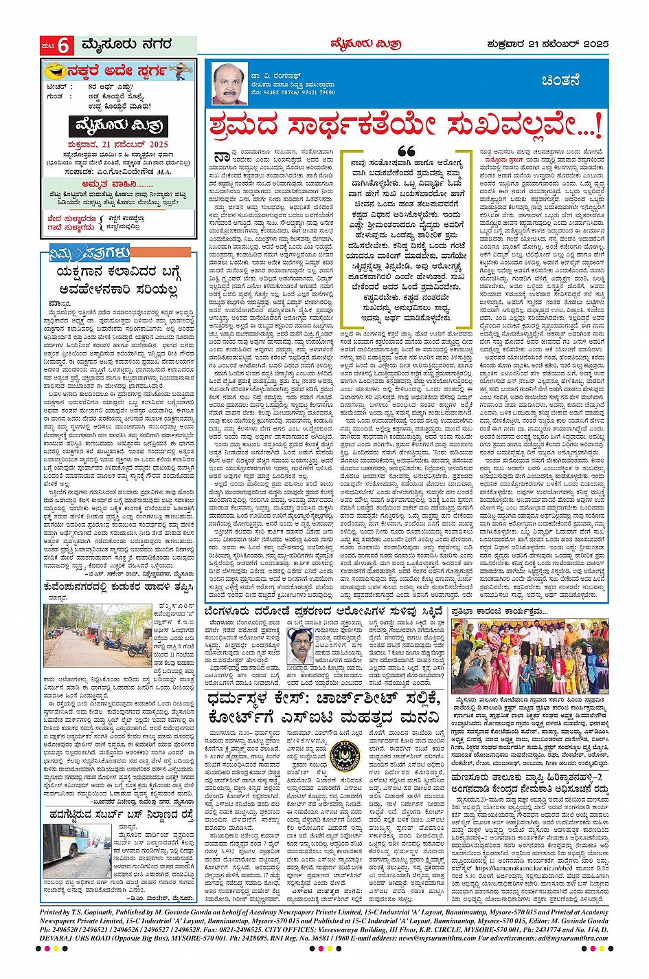 Mysuru Mithra Page: 6 November 21, 2025 << First << 6 >> Last >> Page 1Page 2Page 3Page 4Page 5Page 6Page 7Page 8Page 9Page 10Page 11Page 12Page 13Page 14Page 15Page 16 × Mysuru Mithra << First << 6 >> Last >> Page-1Page-2Page-3Page-4Page-5Page-6Page-7Page-8Page-9Page-10Page-11Page-12Page-13Page-14Page-15Page-16