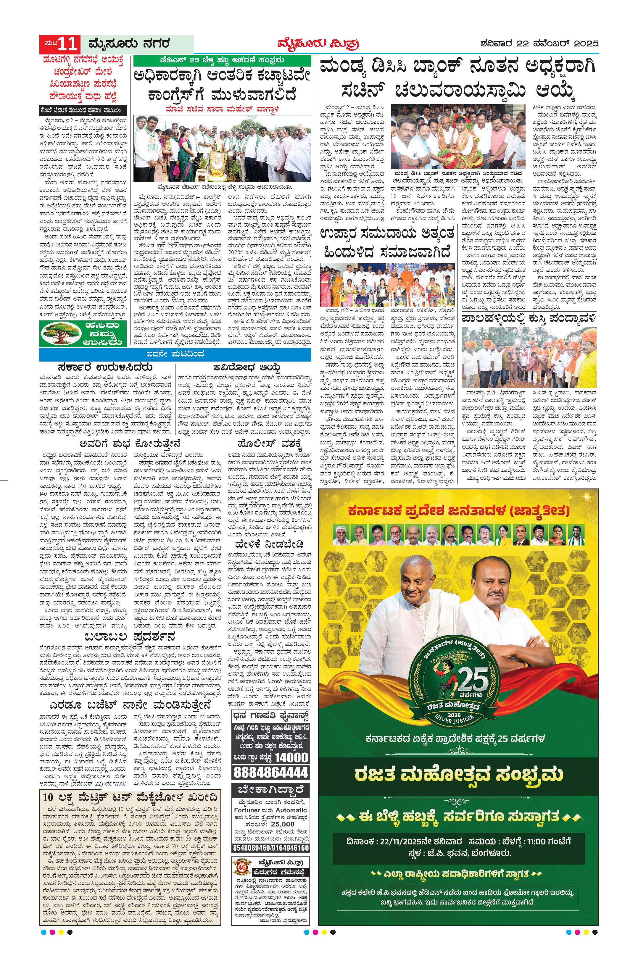Mysuru Mithra Page: 11 November 22, 2025 << First << 11 >> Last >> Page 1Page 2Page 3Page 4Page 5Page 6Page 7Page 8Page 9Page 10Page 11Page 12Page 13Page 14Page 15Page 16 × Mysuru Mithra << First << 11 >> Last >> Page-1Page-2Page-3Page-4Page-5Page-6Page-7Page-8Page-9Page-10Page-11Page-12Page-13Page-14Page-15Page-16