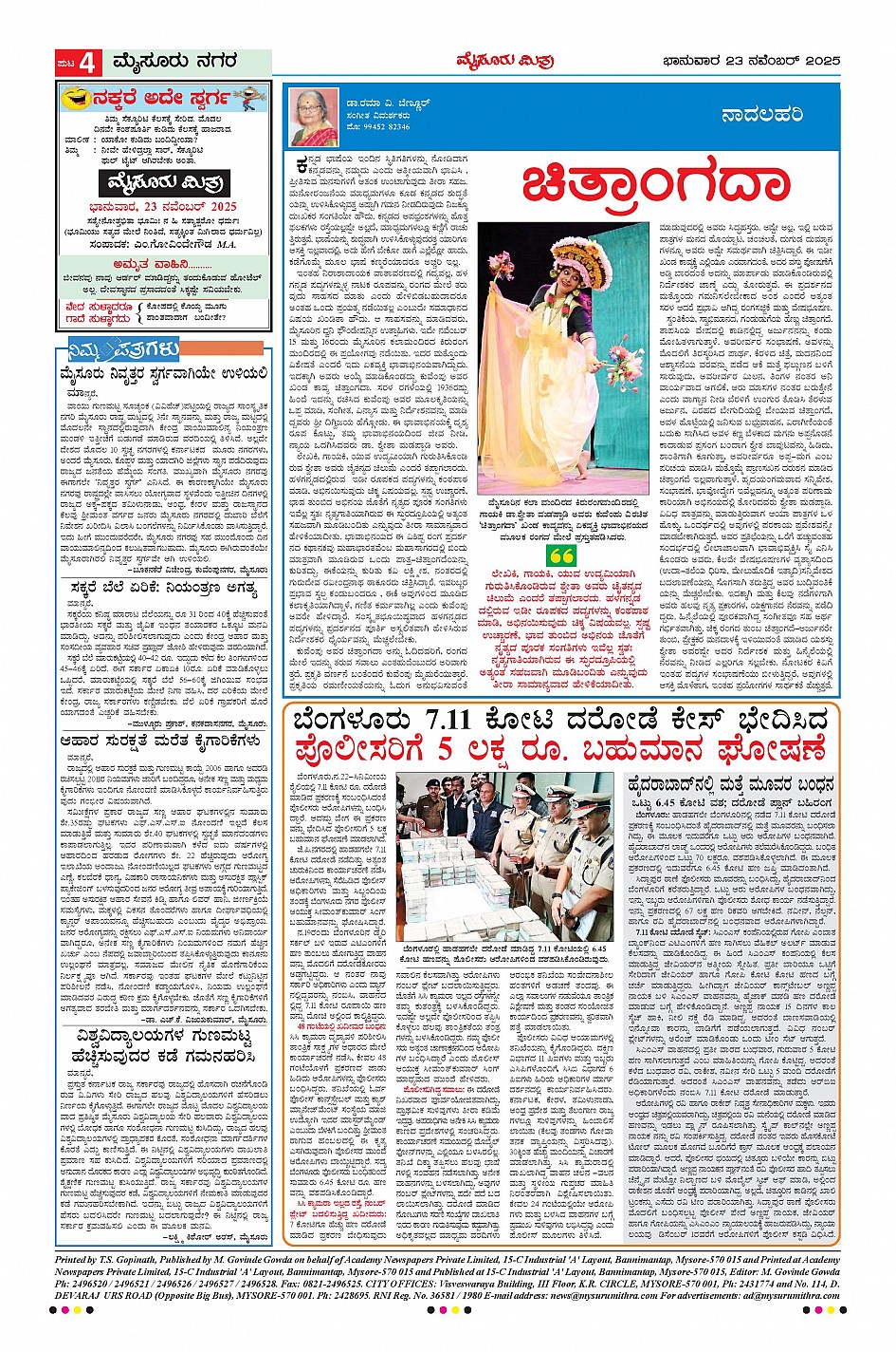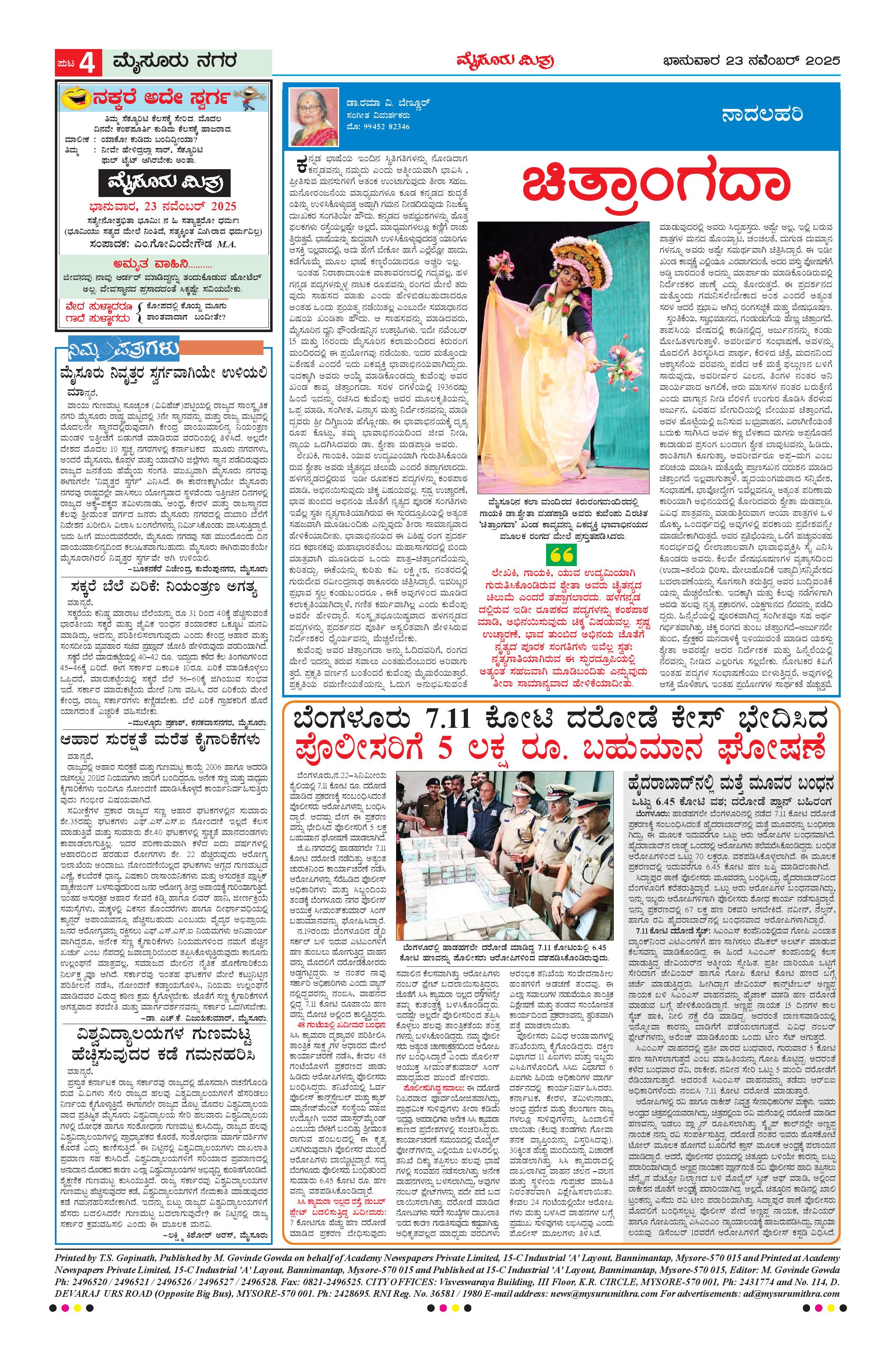 Mysuru Mithra Page: 4 November 23, 2025 << First << 4 >> Last >> Page 1Page 2Page 3Page 4Page 5Page 6Page 7Page 8Page 9Page 10Page 11Page 12 × Mysuru Mithra << First << 4 >> Last >> Page-1Page-2Page-3Page-4Page-5Page-6Page-7Page-8Page-9Page-10Page-11Page-12