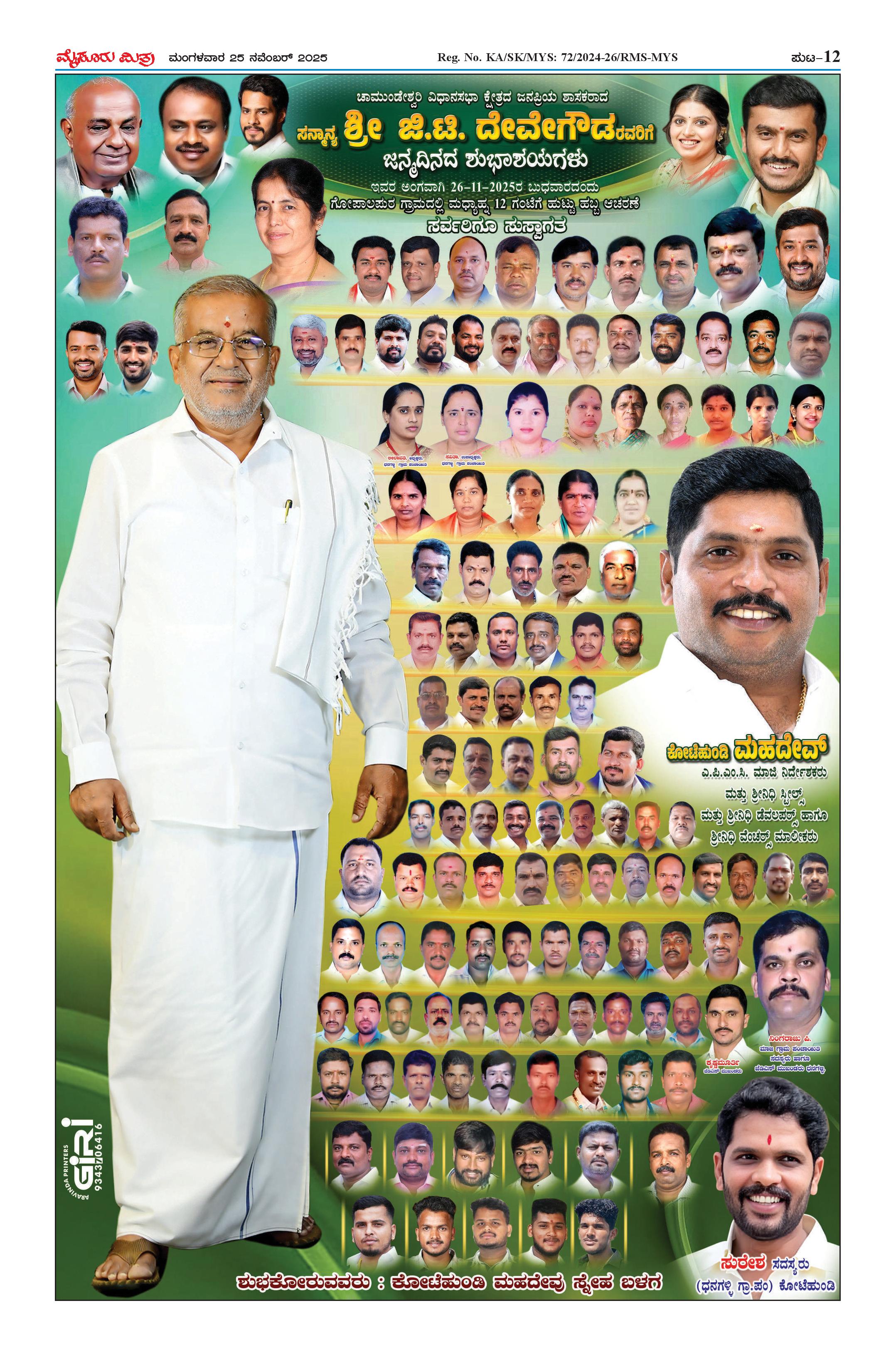 Mysuru Mithra Page: 12 November 25, 2025 << First << 12 >> Last >> Page 1Page 2Page 3Page 4Page 5Page 6Page 7Page 8Page 9Page 10Page 11Page 12Page 13Page 14Page 15Page 16 × Mysuru Mithra << First << 12 >> Last >> Page-1Page-2Page-3Page-4Page-5Page-6Page-7Page-8Page-9Page-10Page-11Page-12Page-13Page-14Page-15Page-16