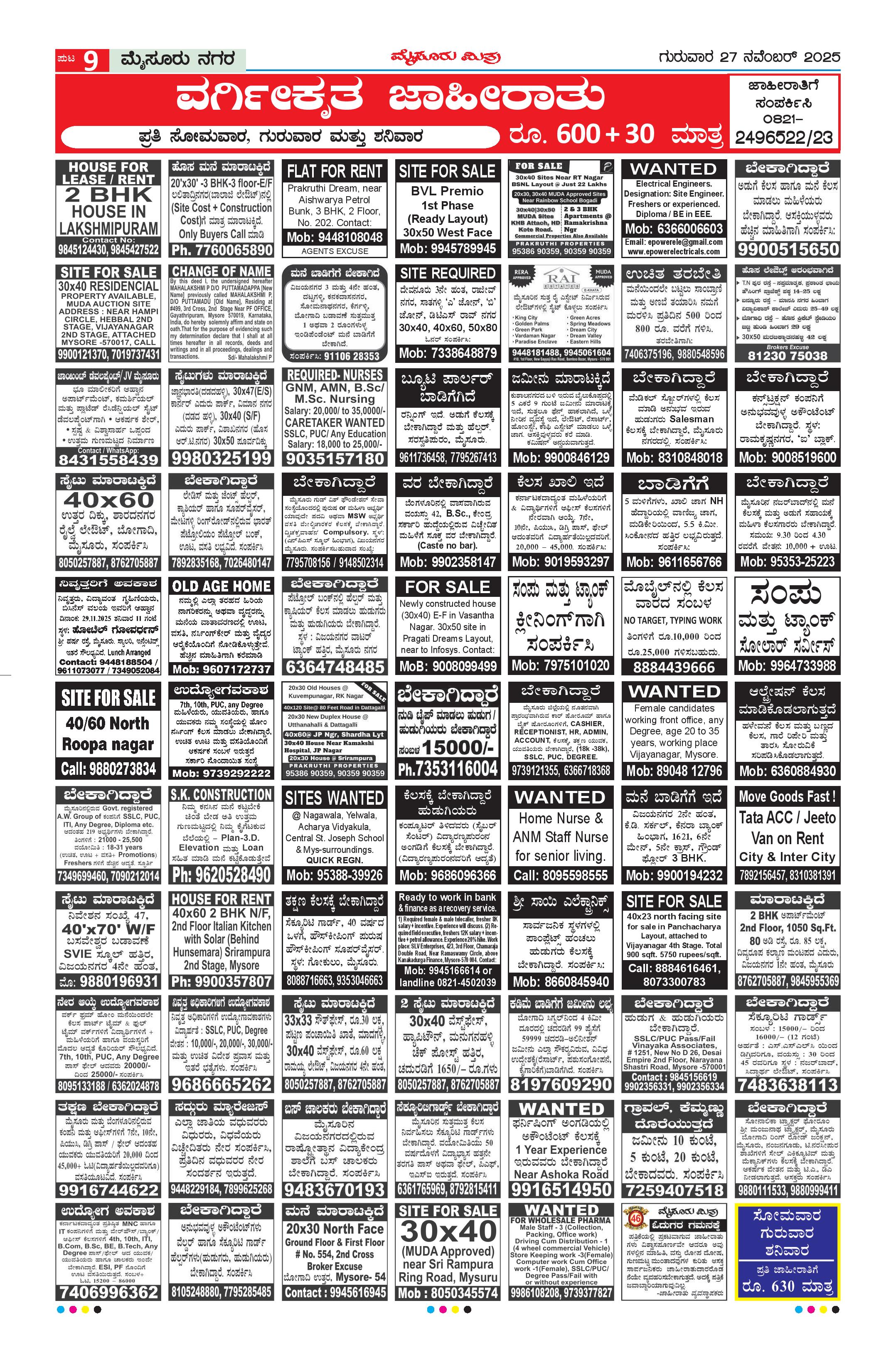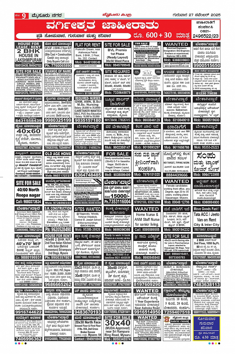 Mysuru Mithra Page: 9 November 27, 2025 << First << 9 >> Last >> Page 1Page 2Page 3Page 4Page 5Page 6Page 7Page 8Page 9Page 10Page 11Page 12 × Mysuru Mithra << First << 9 >> Last >> Page-1Page-2Page-3Page-4Page-5Page-6Page-7Page-8Page-9Page-10Page-11Page-12