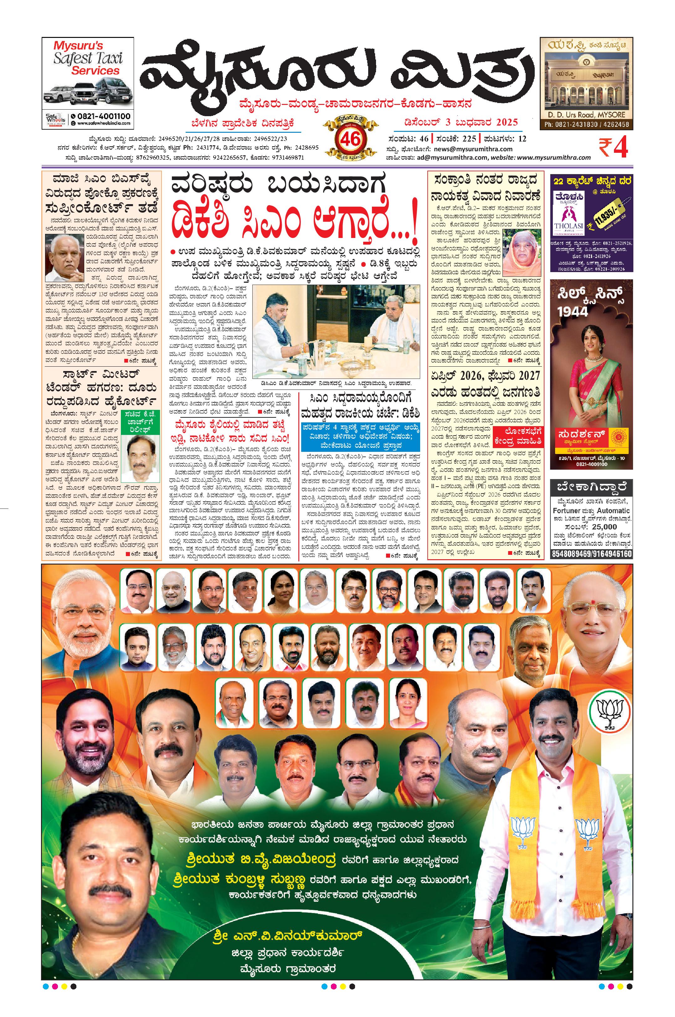 Mysuru Mithra December 03, 2025 << First << 1 >> Last >> Page 1Page 2Page 3Page 4Page 5Page 6Page 7Page 8Page 9Page 10Page 11Page 12 × Mysuru Mithra << First << 1 >> Last >> MM-3-12-page-001MM-3-12-page-002MM-3-12-page-003MM-3-12-page-004MM-3-12-page-005MM-3-12-page-006MM-3-12-page-007MM-3-12-page-008MM-3-12-page-009MM-3-12-page-010MM-3-12-page-011MM-3-12-page-012