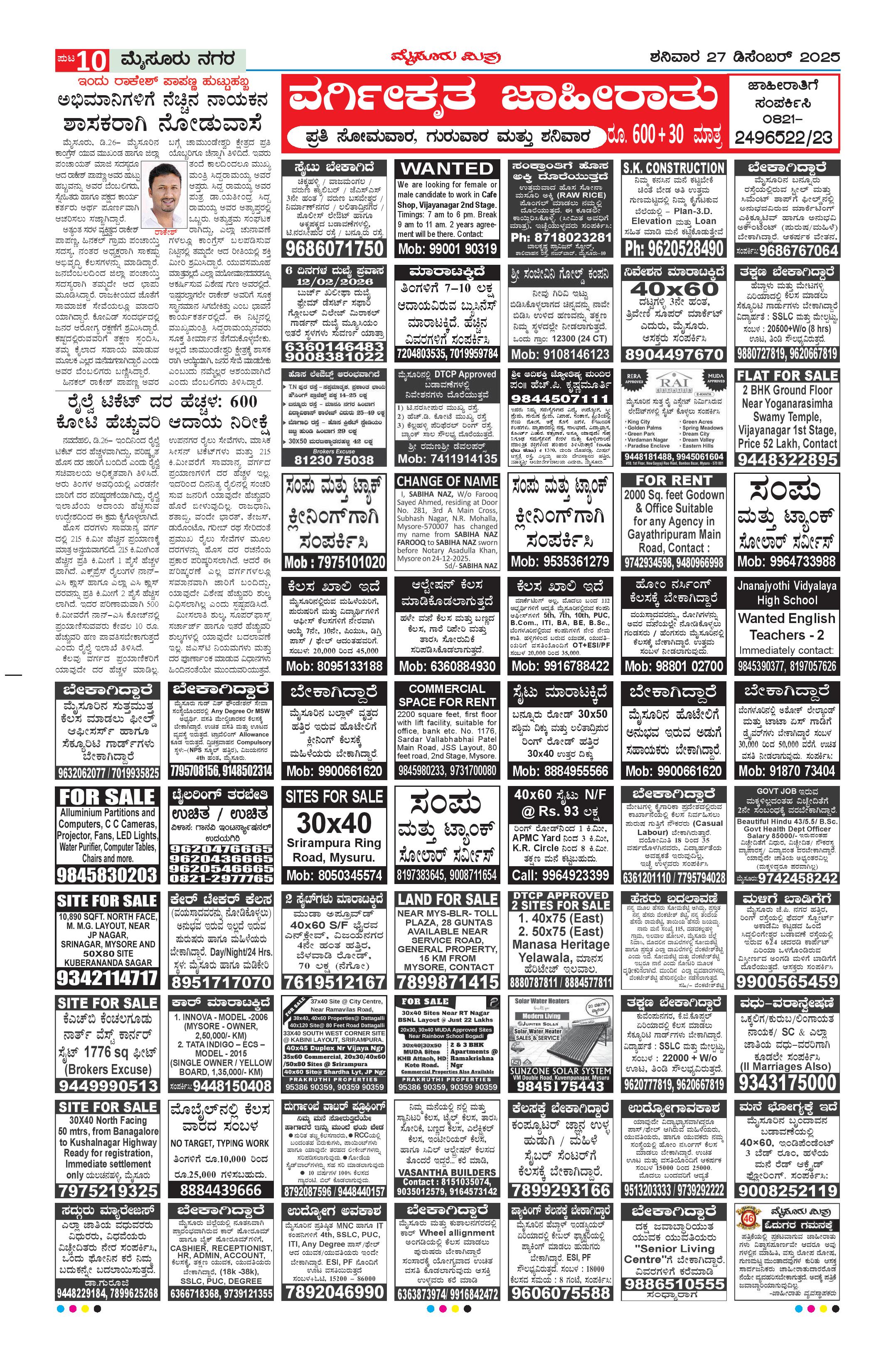 Mysuru Mithra Page: 10 December 27, 2025 << First << 10 >> Last >> Page 1Page 2Page 3Page 4Page 5Page 6Page 7Page 8Page 9Page 10Page 11Page 12Page 13Page 14Page 15Page 16 × Mysuru Mithra << First << 10 >> Last >> Page-1Page-2Page-3Page-4Page-5Page-6Page-7Page-8Page-9Page-10Page-11Page-12Page-13Page-14Page-15Page-16