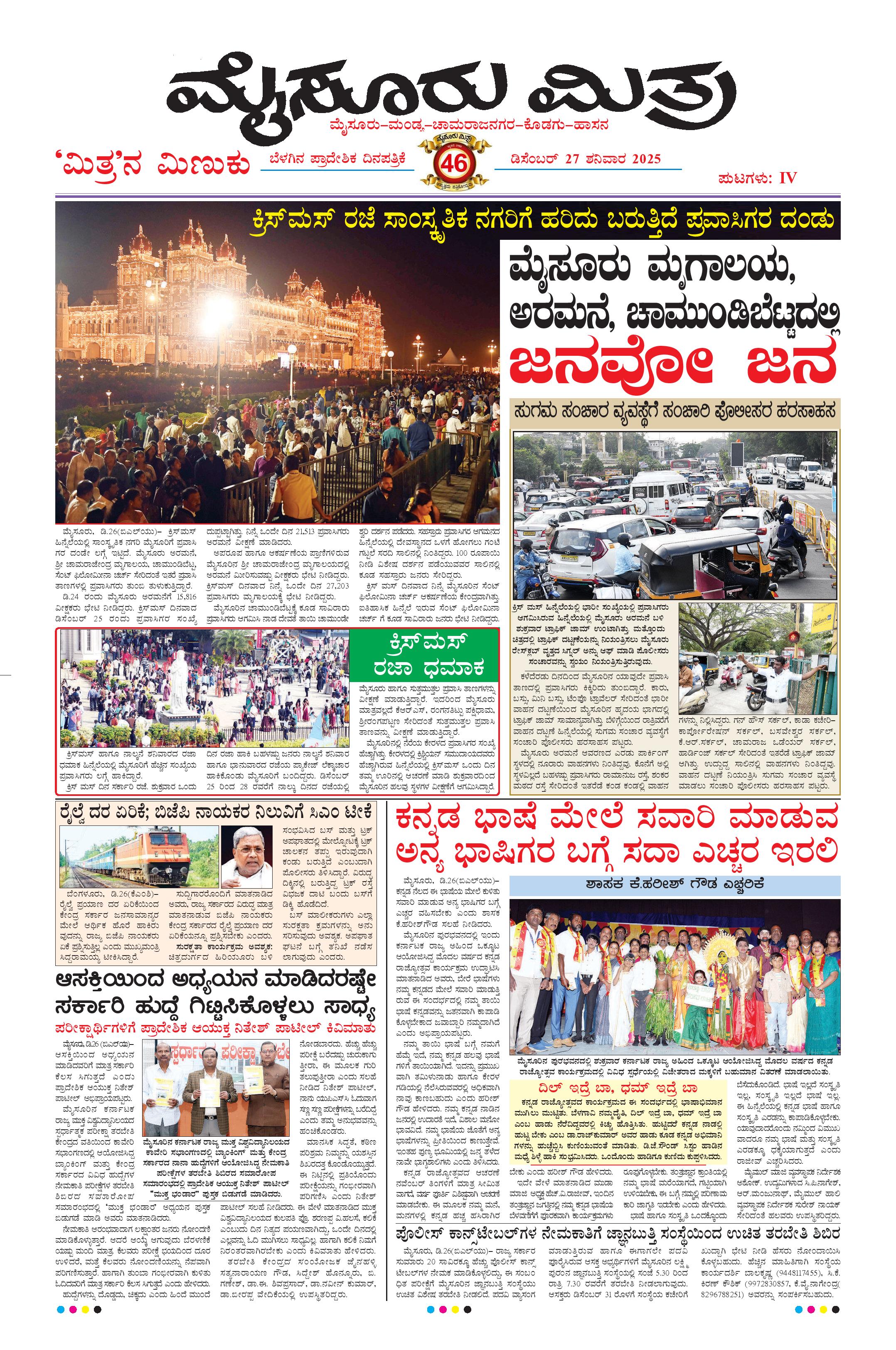 Mysuru Mithra Page: 13 December 27, 2025 << First << 13 >> Last >> Page 1Page 2Page 3Page 4Page 5Page 6Page 7Page 8Page 9Page 10Page 11Page 12Page 13Page 14Page 15Page 16 × Mysuru Mithra << First << 13 >> Last >> Page-1Page-2Page-3Page-4Page-5Page-6Page-7Page-8Page-9Page-10Page-11Page-12Page-13Page-14Page-15Page-16