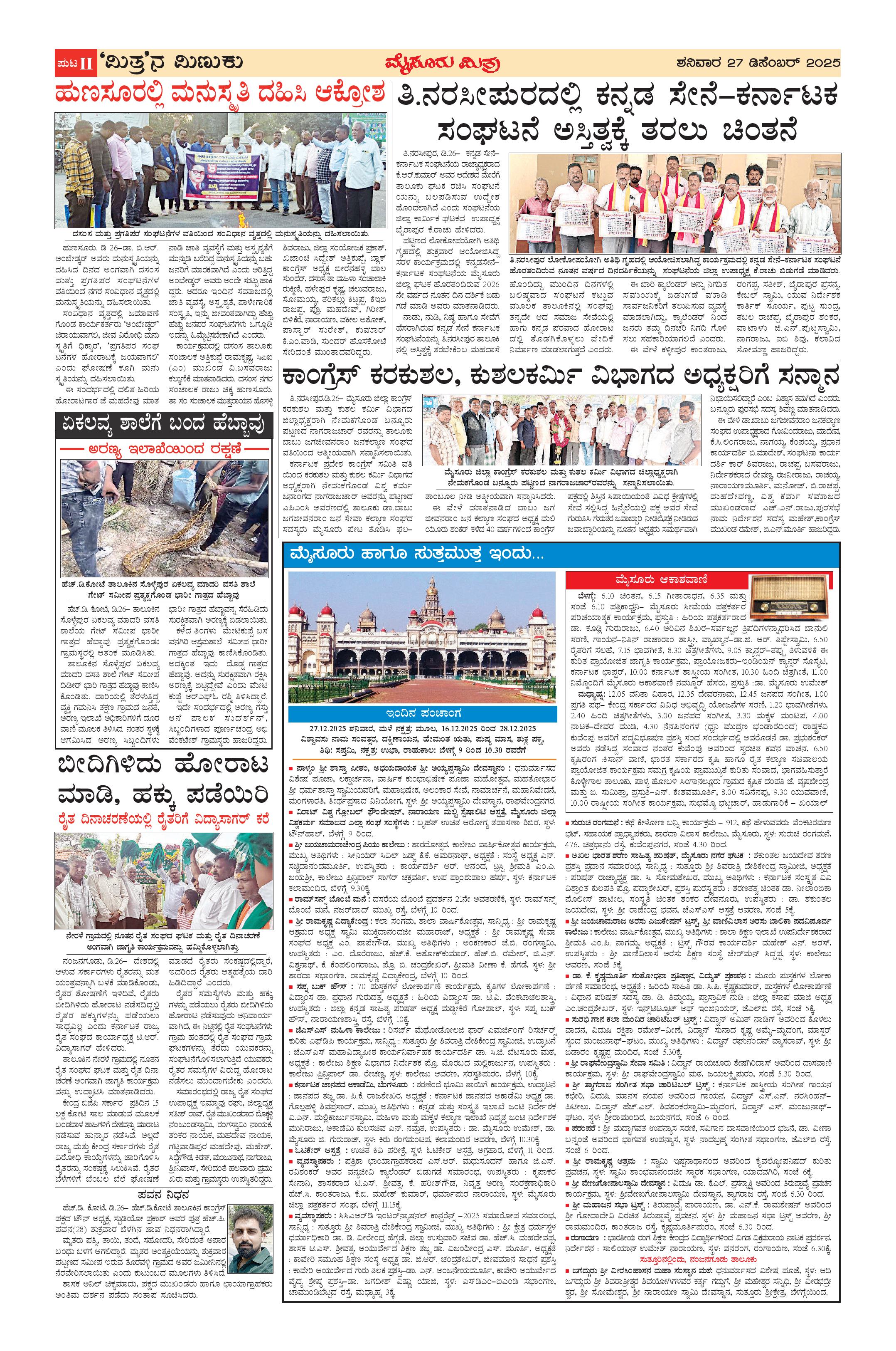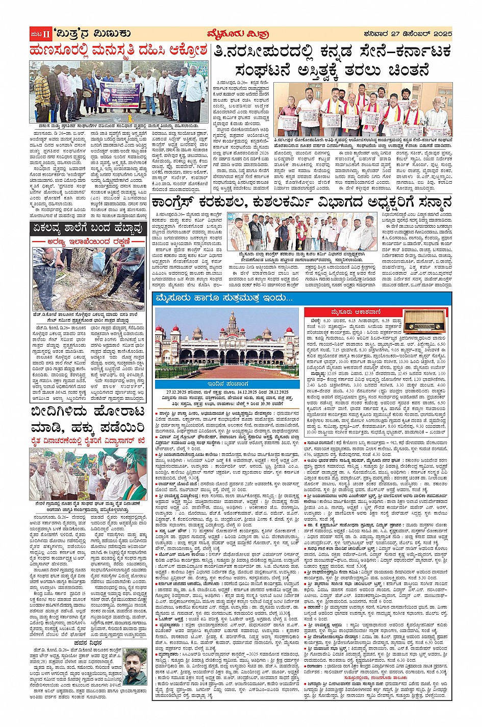 Mysuru Mithra Page: 14 December 27, 2025 << First << 14 >> Last >> Page 1Page 2Page 3Page 4Page 5Page 6Page 7Page 8Page 9Page 10Page 11Page 12Page 13Page 14Page 15Page 16 × Mysuru Mithra << First << 14 >> Last >> Page-1Page-2Page-3Page-4Page-5Page-6Page-7Page-8Page-9Page-10Page-11Page-12Page-13Page-14Page-15Page-16
