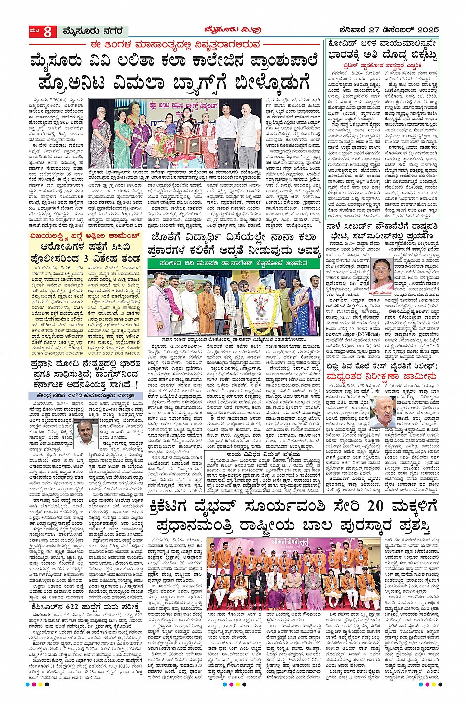 Mysuru Mithra Page: 8 December 27, 2025 << First << 8 >> Last >> Page 1Page 2Page 3Page 4Page 5Page 6Page 7Page 8Page 9Page 10Page 11Page 12Page 13Page 14Page 15Page 16 × Mysuru Mithra << First << 8 >> Last >> Page-1Page-2Page-3Page-4Page-5Page-6Page-7Page-8Page-9Page-10Page-11Page-12Page-13Page-14Page-15Page-16