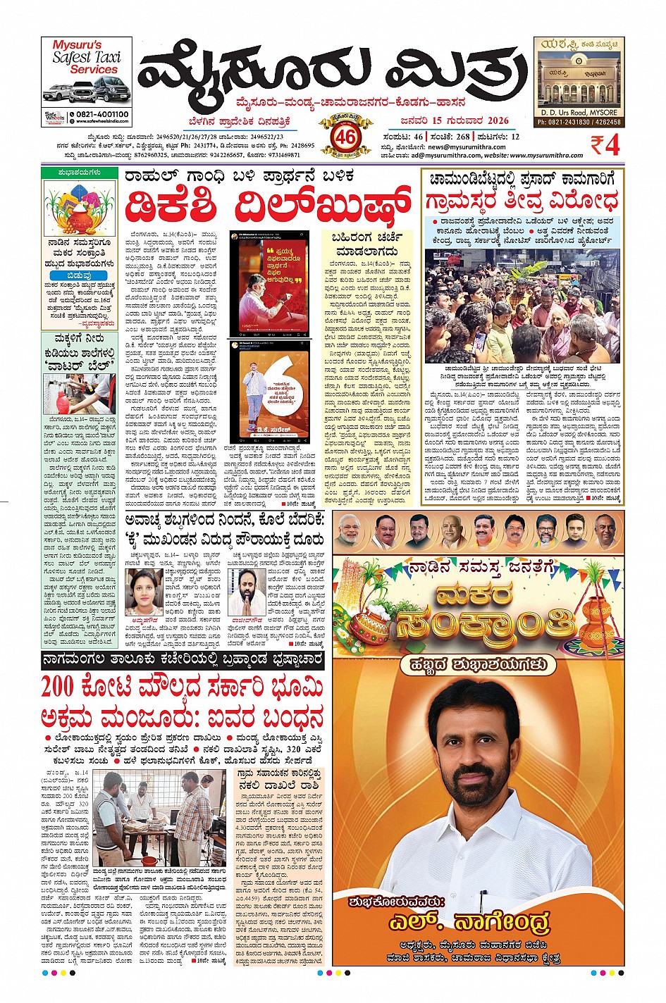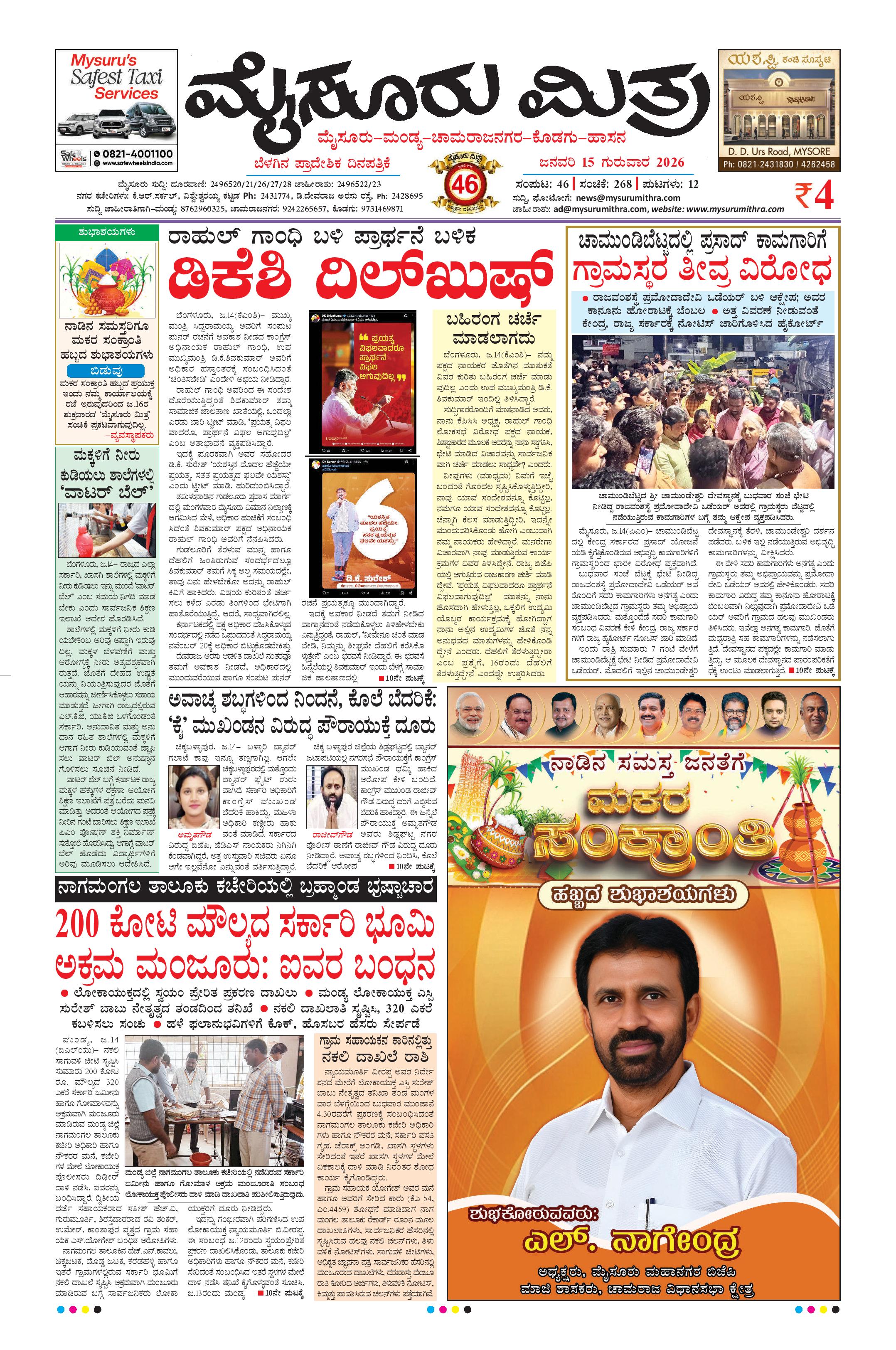 Mysuru Mithra Page: 5 January 15, 2026 << First << 5 >> Last >> Page 1Page 2Page 3Page 4Page 5Page 6Page 7Page 8Page 9Page 10Page 11Page 12 × Mysuru Mithra << First << 5 >> Last >> Page-1Page-2Page-3Page-4Page-5Page-6Page-7Page-8Page-9Page-10Page-11Page-12