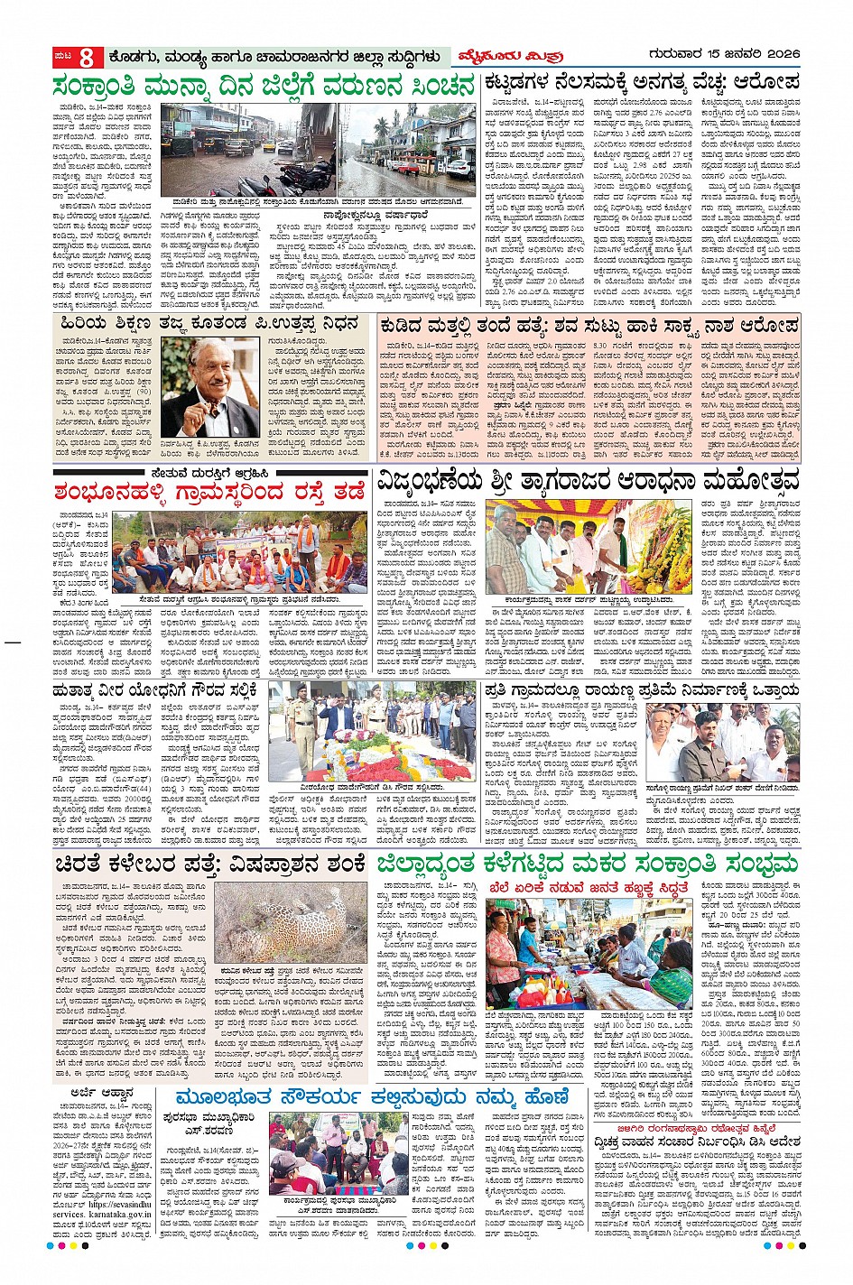 Mysuru Mithra Page: 8 January 15, 2026 << First << 8 >> Last >> Page 1Page 2Page 3Page 4Page 5Page 6Page 7Page 8Page 9Page 10Page 11Page 12 × Mysuru Mithra << First << 8 >> Last >> Page-1Page-2Page-3Page-4Page-5Page-6Page-7Page-8Page-9Page-10Page-11Page-12