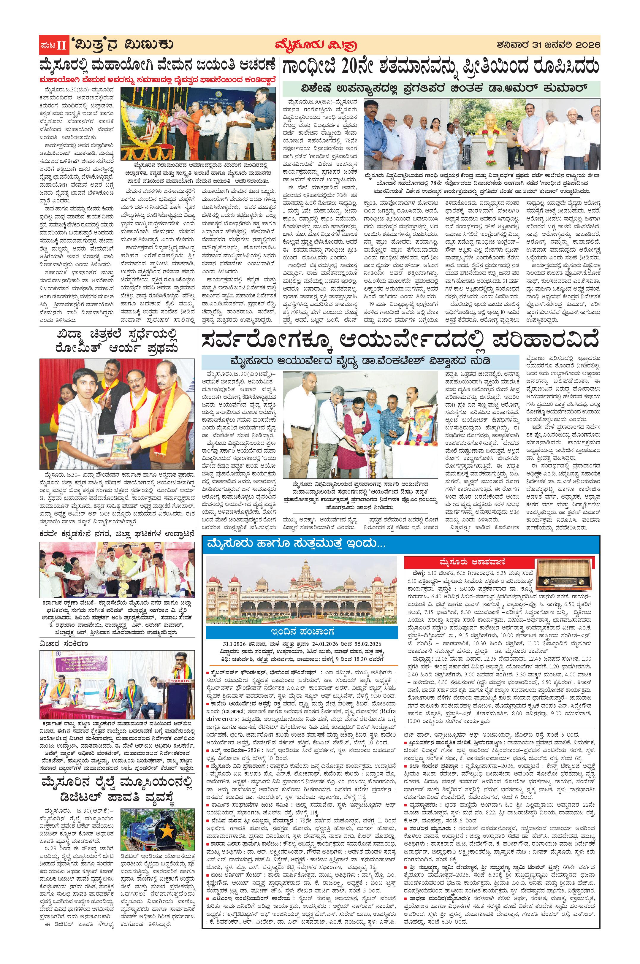 Mysuru Mithra Page: 14 January 31, 2026 << First << 14 >> Last >> Page 1Page 2Page 3Page 4Page 5Page 6Page 7Page 8Page 9Page 10Page 11Page 12Page 13Page 14Page 15Page 16 × Mysuru Mithra << First << 14 >> Last >> Page-1Page-2Page-3Page-4Page-5Page-6Page-7Page-8Page-9Page-10Page-11Page-12Page-13Page-14Page-15Page-16