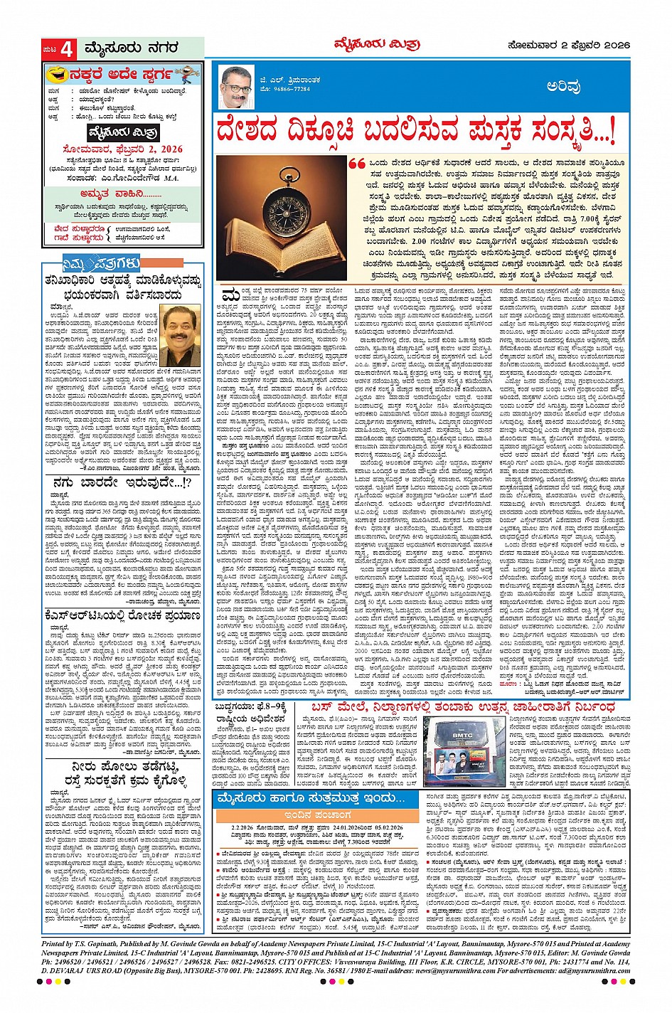 Mysuru Mithra Page: 4 February 02, 2026 << First << 4 >> Last >> Page 1Page 2Page 3Page 4Page 5Page 6Page 7Page 8Page 9Page 10Page 11Page 12 × Mysuru Mithra << First << 4 >> Last >> MM-2-2-page-001MM-2-2-page-002MM-2-2-page-003MM-2-2-page-004MM-2-2-page-005MM-2-2-page-006MM-2-2-page-007MM-2-2-page-008MM-2-2-page-009MM-2-2-page-010MM-2-2-page-011MM-2-2-page-012