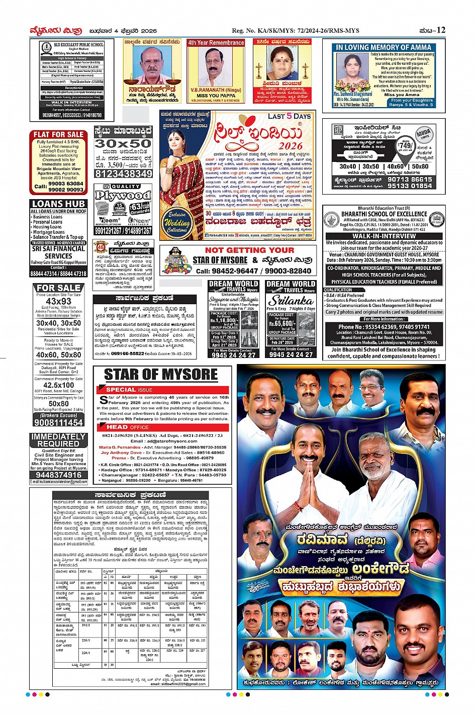 Mysuru Mithra Page: 12 February 04, 2026 << First << 12 >> Last >> Page 1Page 2Page 3Page 4Page 5Page 6Page 7Page 8Page 9Page 10Page 11Page 12 × Mysuru Mithra << First << 12 >> Last >> MM-4-2-page-001MM-4-2-page-002MM-4-2-page-003MM-4-2-page-004MM-4-2-page-005MM-4-2-page-006MM-4-2-page-007MM-4-2-page-008MM-4-2-page-009MM-4-2-page-010MM-4-2-page-011MM-4-2-page-012