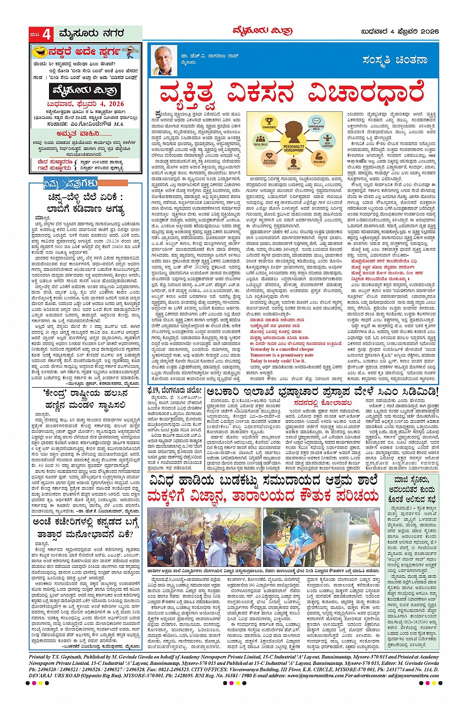 Mysuru Mithra Page: 4 February 04, 2026 << First << 4 >> Last >> Page 1Page 2Page 3Page 4Page 5Page 6Page 7Page 8Page 9Page 10Page 11Page 12 × Mysuru Mithra << First << 4 >> Last >> MM-4-2-page-001MM-4-2-page-002MM-4-2-page-003MM-4-2-page-004MM-4-2-page-005MM-4-2-page-006MM-4-2-page-007MM-4-2-page-008MM-4-2-page-009MM-4-2-page-010MM-4-2-page-011MM-4-2-page-012