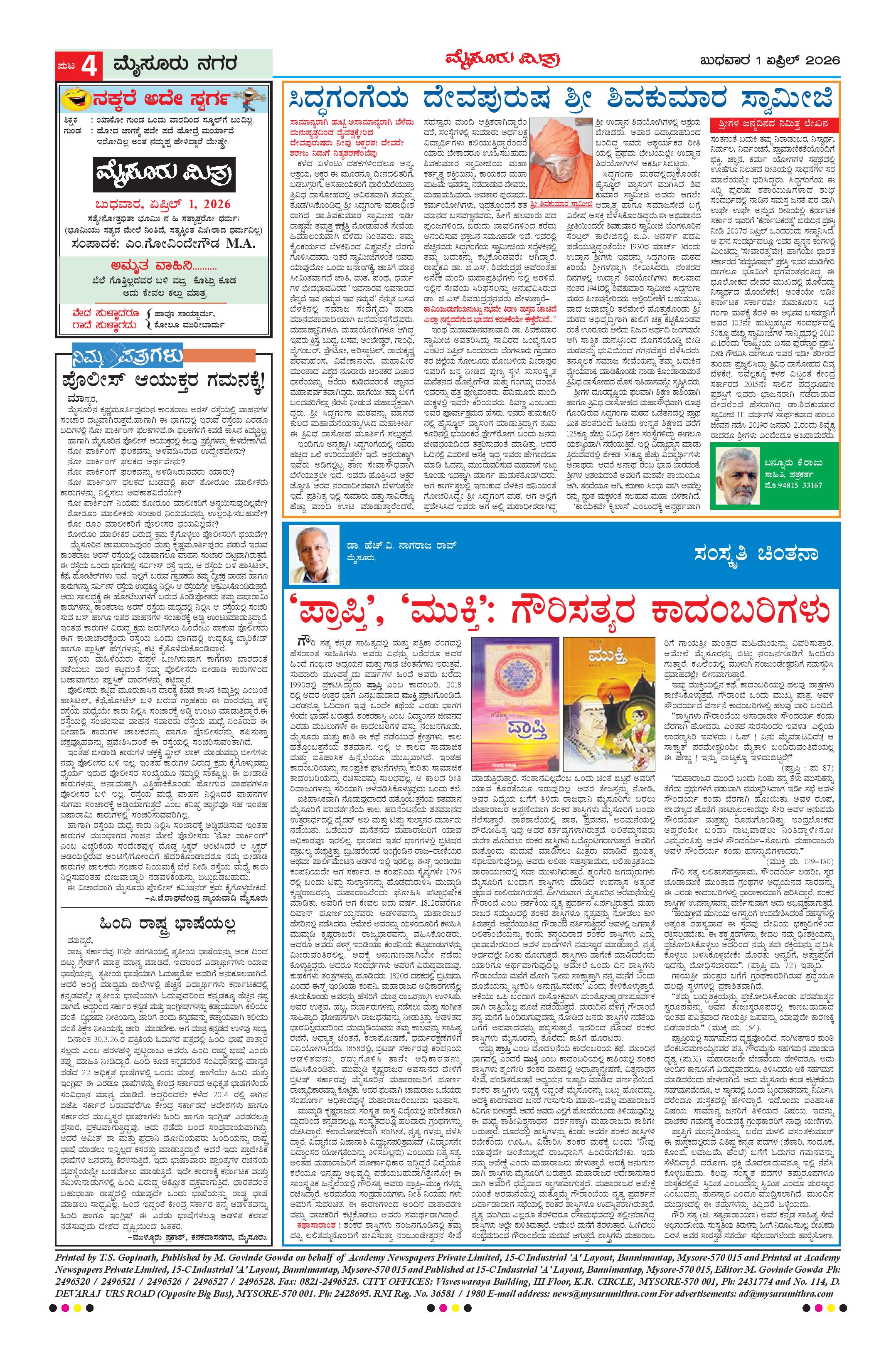 Mysuru Mithra Page: 4 April 01, 2026 << First << 4 >> Last >> Page 1Page 2Page 3Page 4Page 5Page 6Page 7Page 8Page 9Page 10Page 11Page 12 × Mysuru Mithra << First << 4 >> Last >> MM-1-4-page-001MM-1-4-page-002MM-1-4-page-003MM-1-4-page-004MM-1-4-page-005MM-1-4-page-006MM-1-4-page-007MM-1-4-page-008MM-1-4-page-009MM-1-4-page-010MM-1-4-page-011MM-1-4-page-012