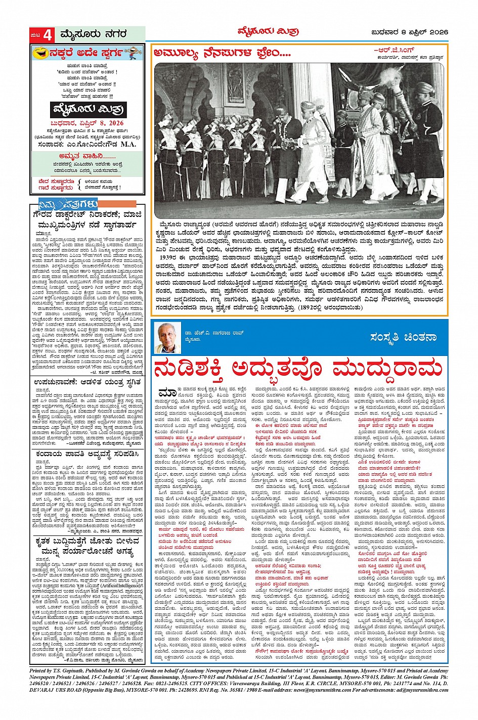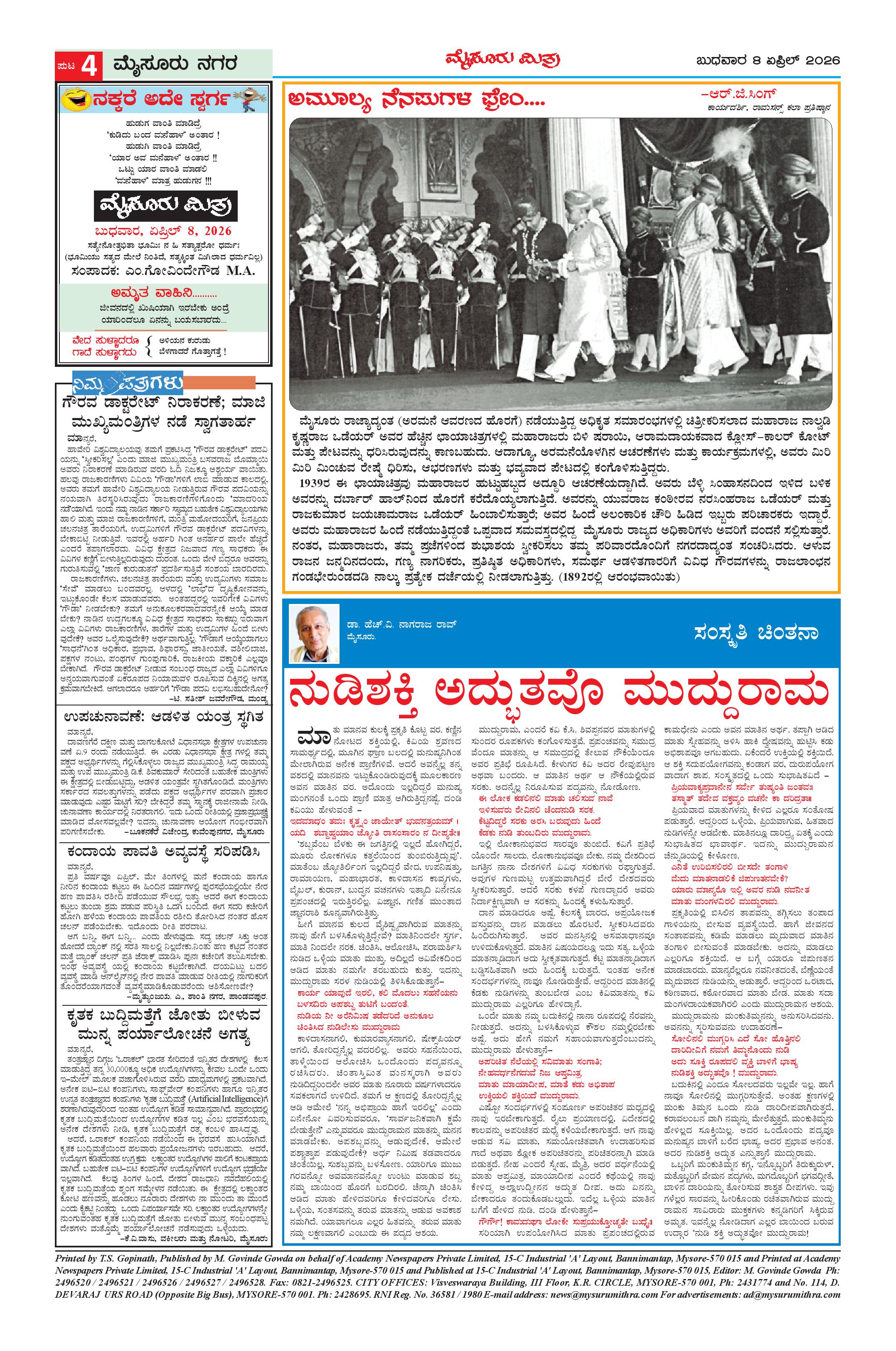 Mysuru Mithra Page: 4 April 08, 2026 << First << 4 >> Last >> Page 1Page 2Page 3Page 4Page 5Page 6Page 7Page 8Page 9Page 10Page 11Page 12 × Mysuru Mithra << First << 4 >> Last >> MM-8-4-page-001MM-8-4-page-002MM-8-4-page-003MM-8-4-page-004MM-8-4-page-005MM-8-4-page-006MM-8-4-page-007MM-8-4-page-008MM-8-4-page-009MM-8-4-page-010MM-8-4-page-011MM-8-4-page-012