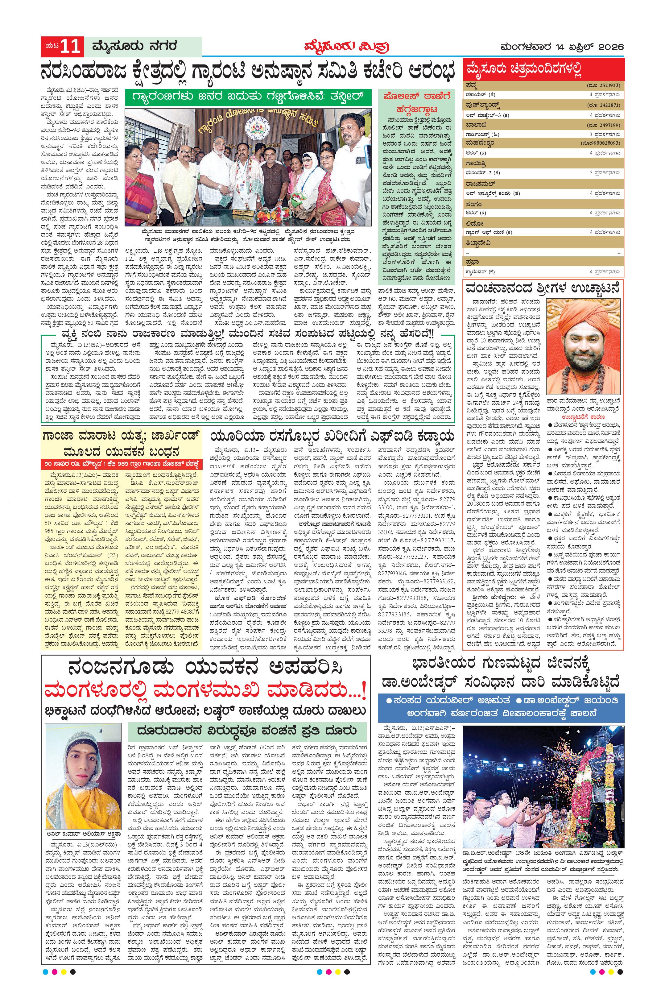 Mysuru Mithra Page: 11 April 14, 2026 << First << 11 >> Last >> Page 1Page 2Page 3Page 4Page 5Page 6Page 7Page 8Page 9Page 10Page 11Page 12 × Mysuru Mithra << First << 11 >> Last >> Page-1Page-2Page-3Page-4Page-5Page-6Page-7Page-8Page-9Page-10Page-11Page-12