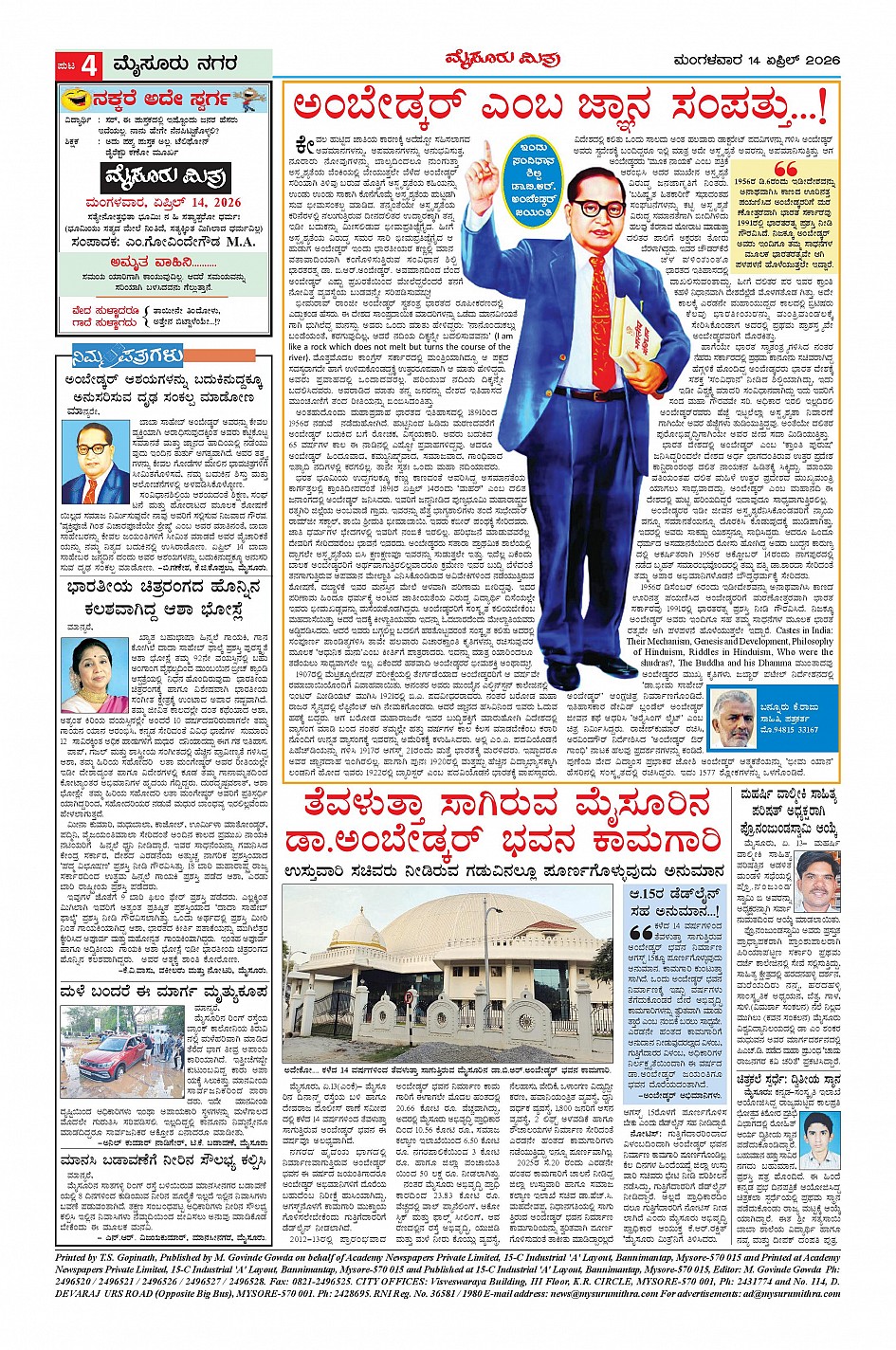 Mysuru Mithra Page: 4 April 14, 2026 << First << 4 >> Last >> Page 1Page 2Page 3Page 4Page 5Page 6Page 7Page 8Page 9Page 10Page 11Page 12 × Mysuru Mithra << First << 4 >> Last >> Page-1Page-2Page-3Page-4Page-5Page-6Page-7Page-8Page-9Page-10Page-11Page-12