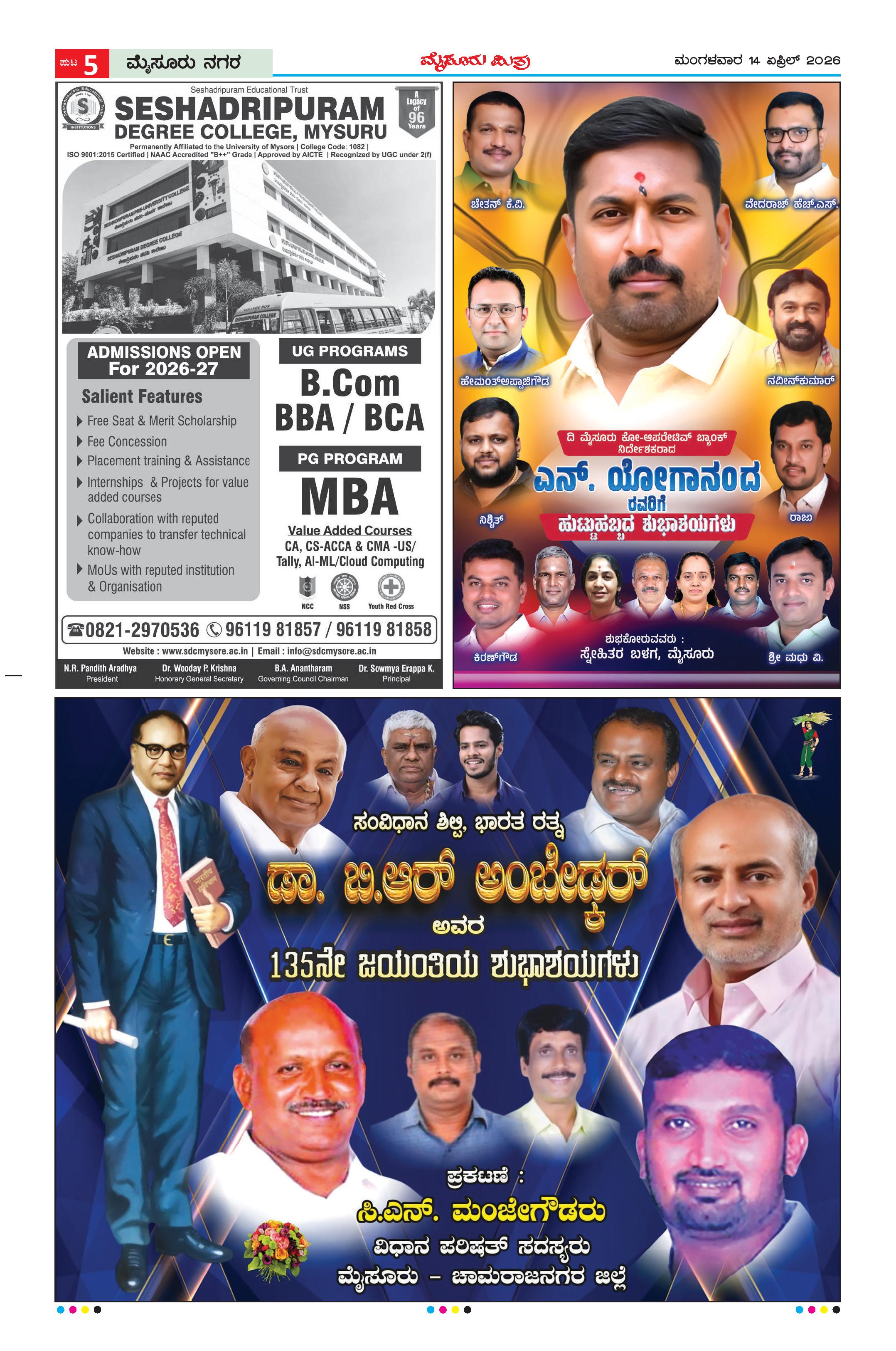 Mysuru Mithra Page: 5 April 14, 2026 << First << 5 >> Last >> Page 1Page 2Page 3Page 4Page 5Page 6Page 7Page 8Page 9Page 10Page 11Page 12 × Mysuru Mithra << First << 5 >> Last >> Page-1Page-2Page-3Page-4Page-5Page-6Page-7Page-8Page-9Page-10Page-11Page-12